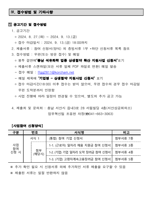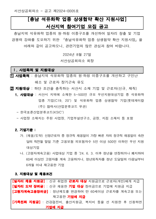 | [업종별 상생협약] 2024년 충남 석유화학 제조업 상생협약 확산지원 사업(서산 지역) 참여기업 모집공고 |