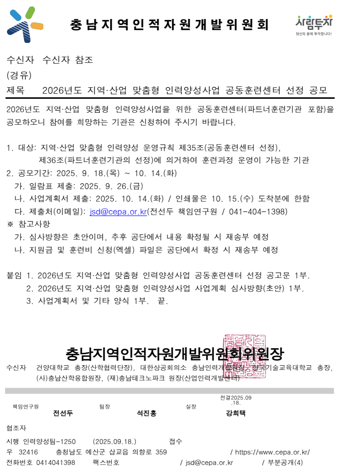 | 2026년도 지역·산업 맞춤형 인력양성사업 공동훈련센터 선정 공모 |