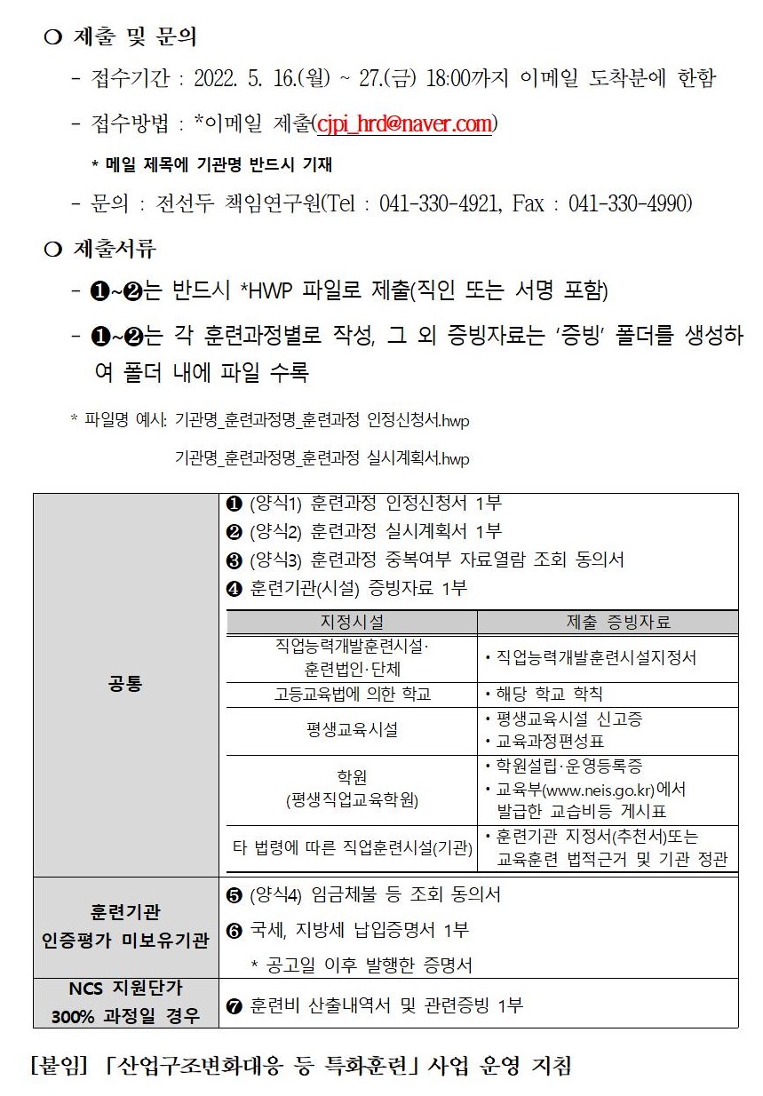 | [공고] 2022년 제2회 「산업구조변화대응 등 특화훈련」훈련과정 공모 |