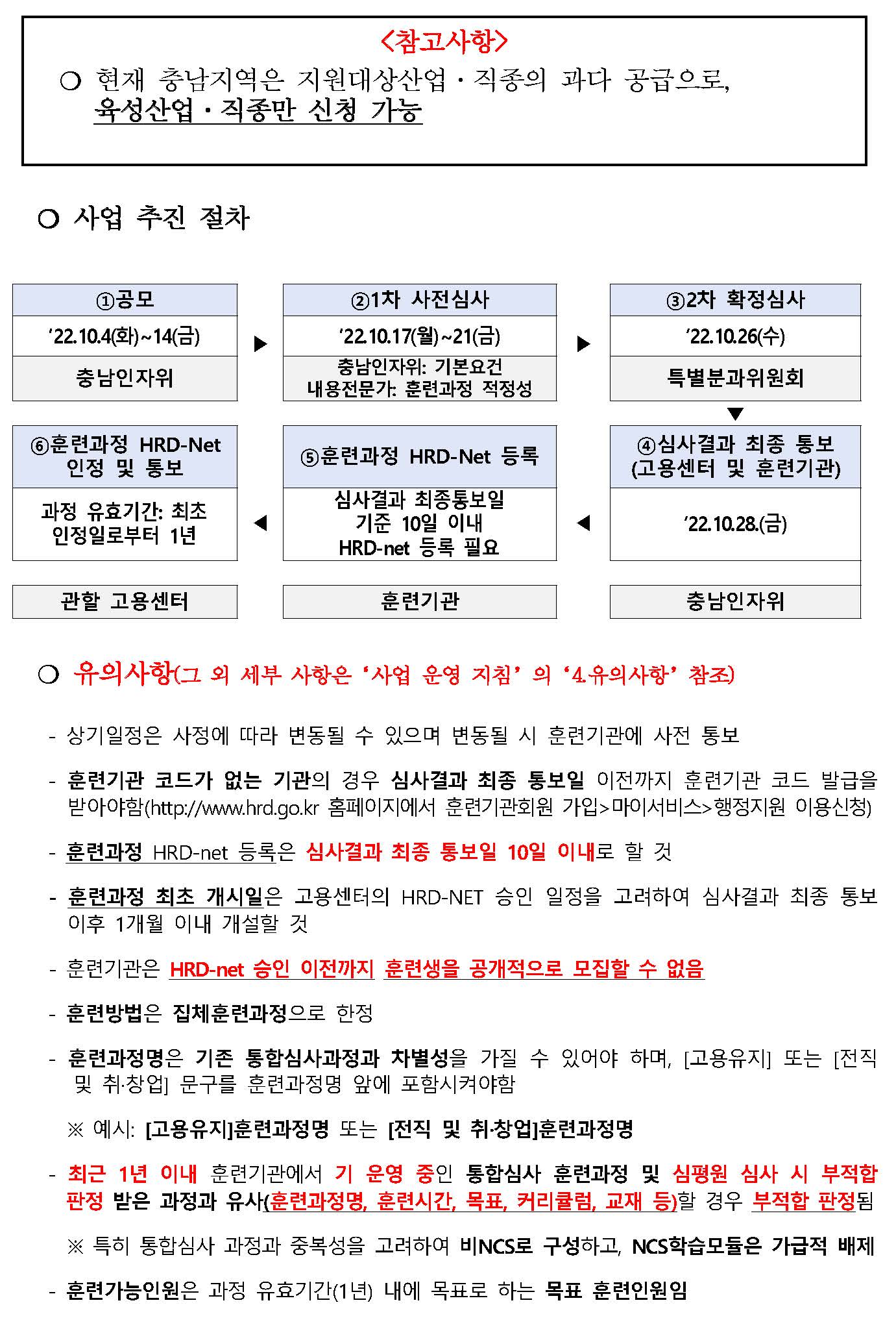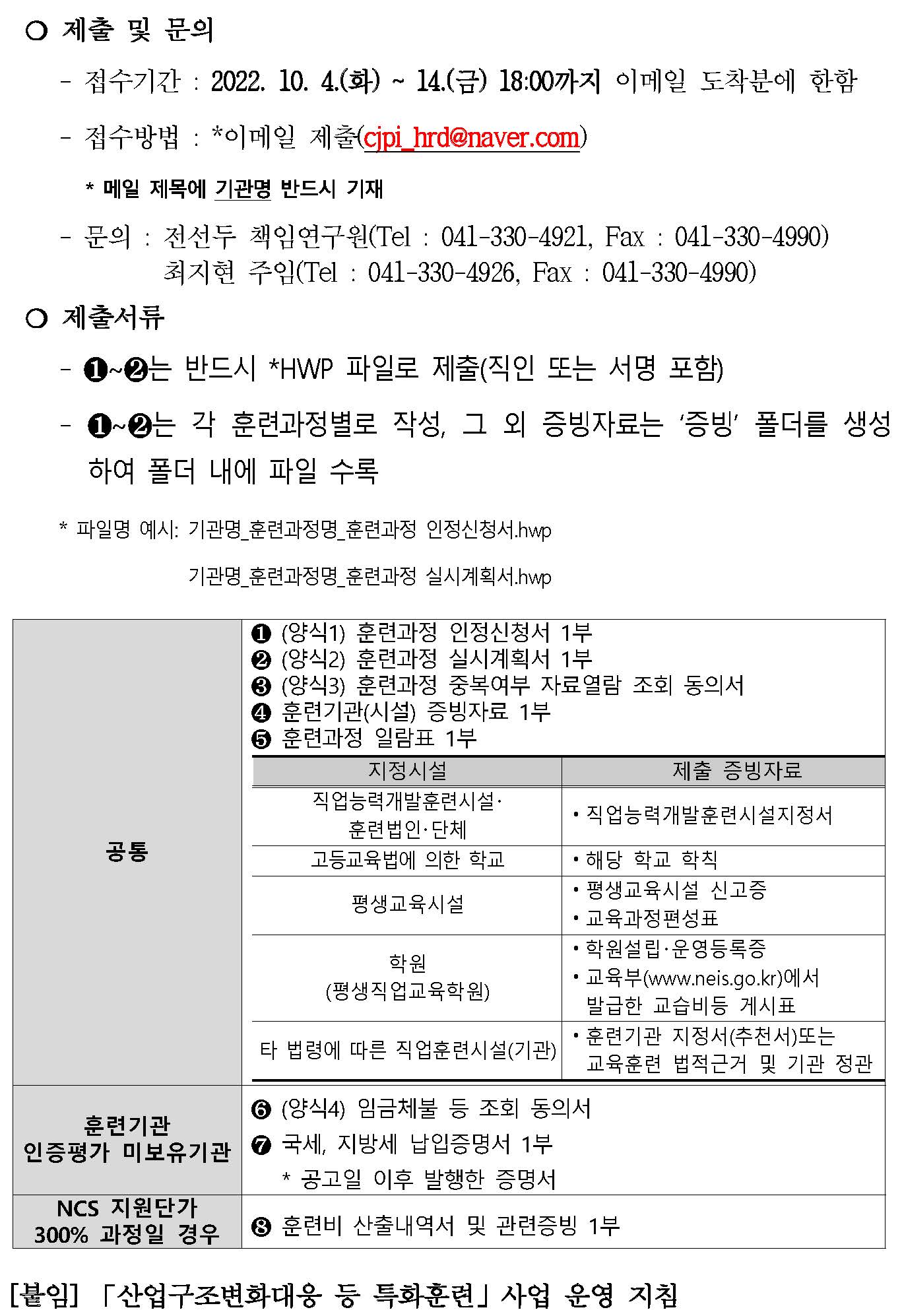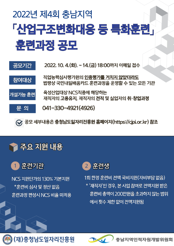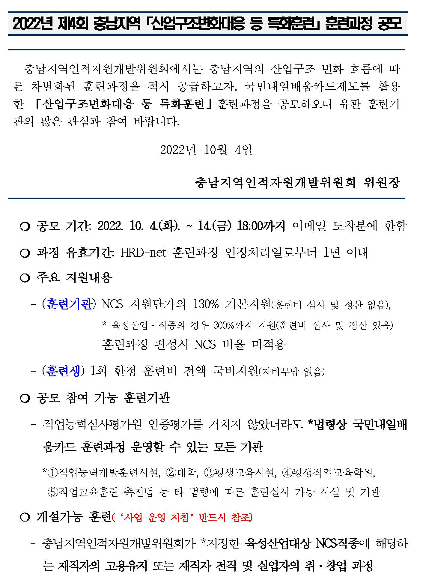 | [공고] 2022년 제4회 「산업구조변화대응 등 특화훈련」 훈련과정 공모 |