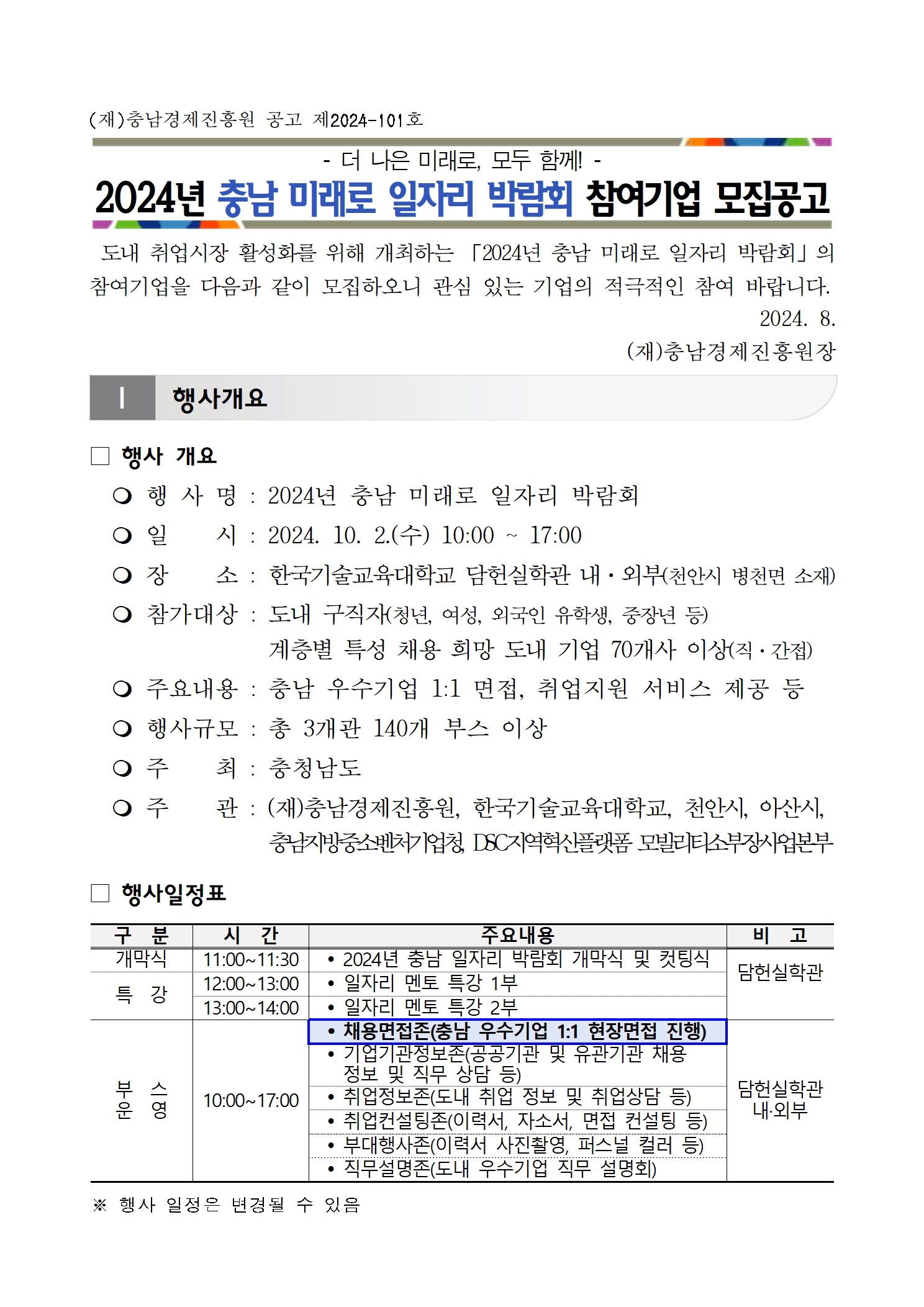 | 2024년 충남 미래로 일자리 박람회 참여기업 모집 공고 |