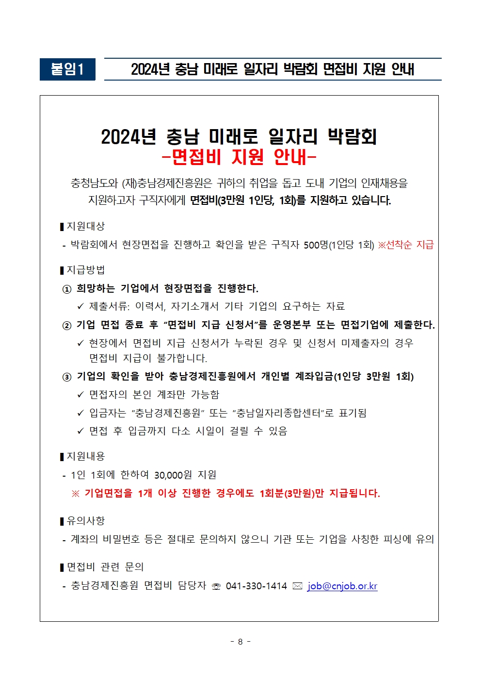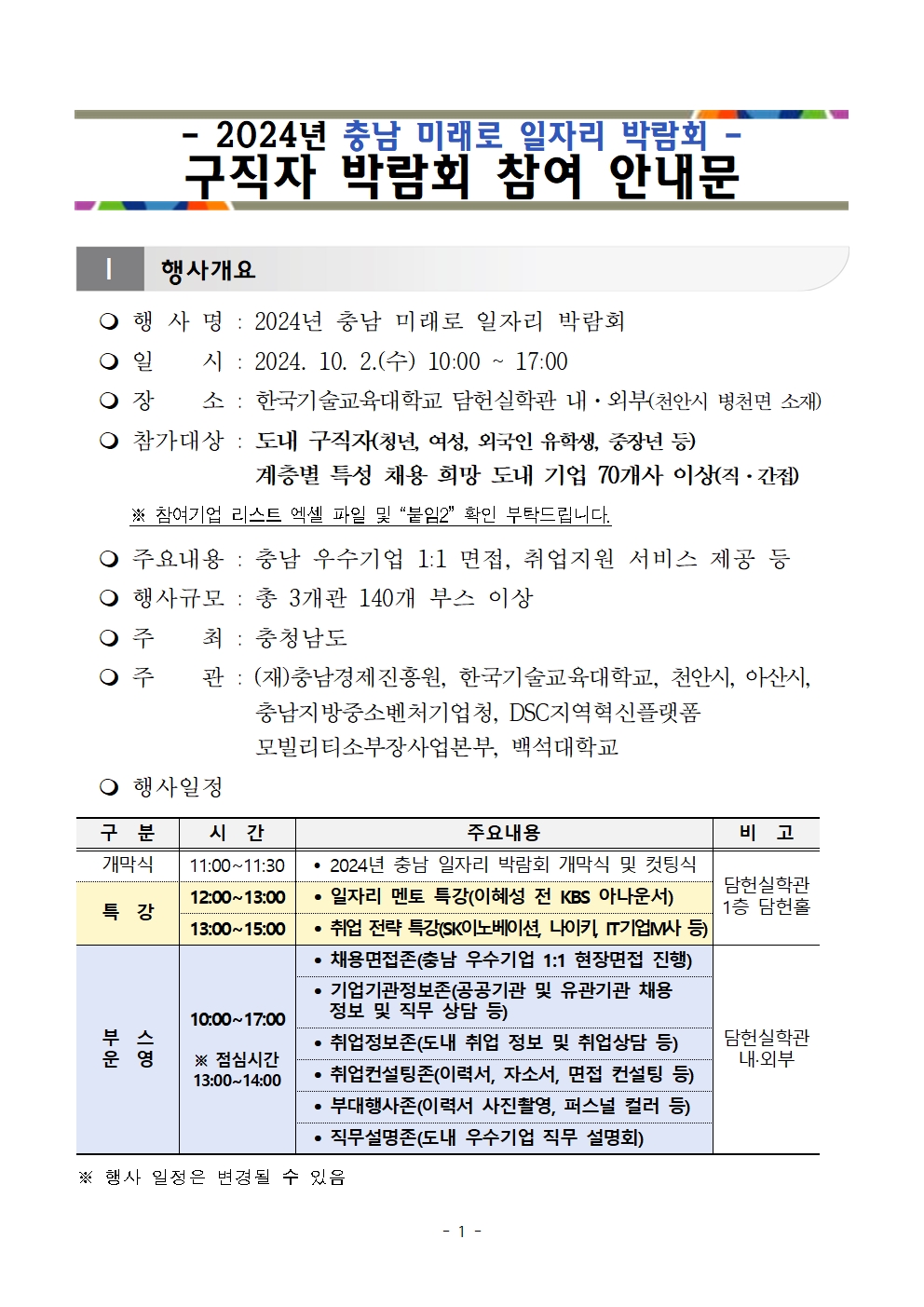 | 2024년 충남 미래로 일자리 박람회 구직자 참여 안내 |