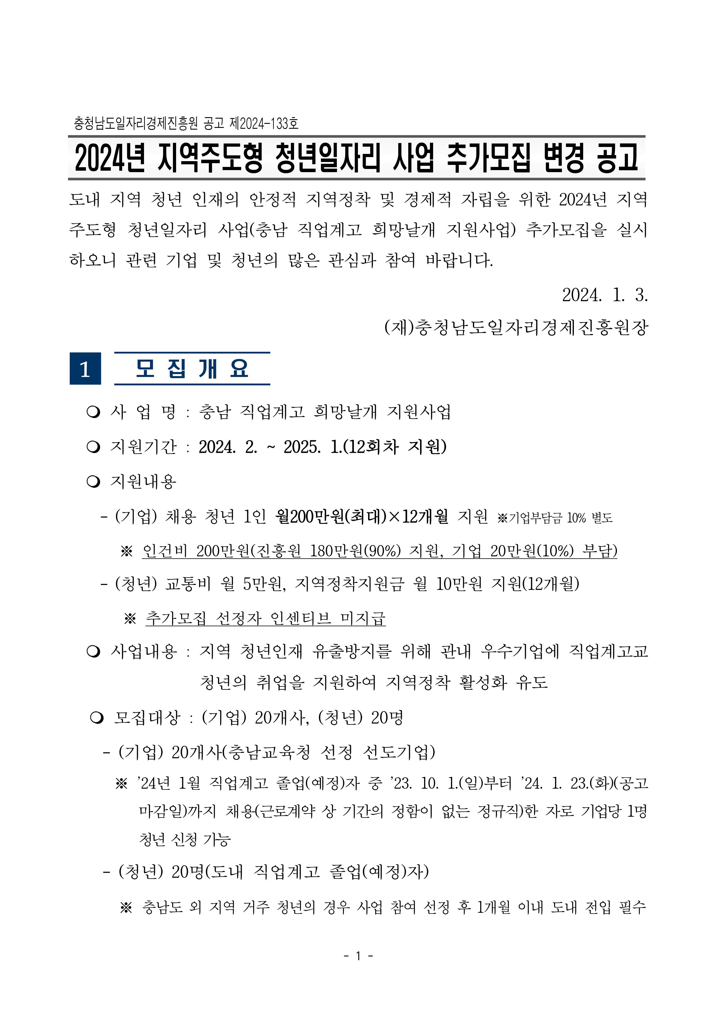 | 2024년 지역주도형 청년일자리사업 참여 청년, 기업 추가모집(변경공고) |