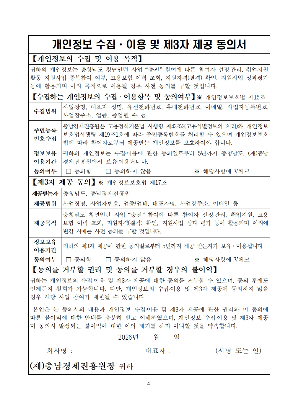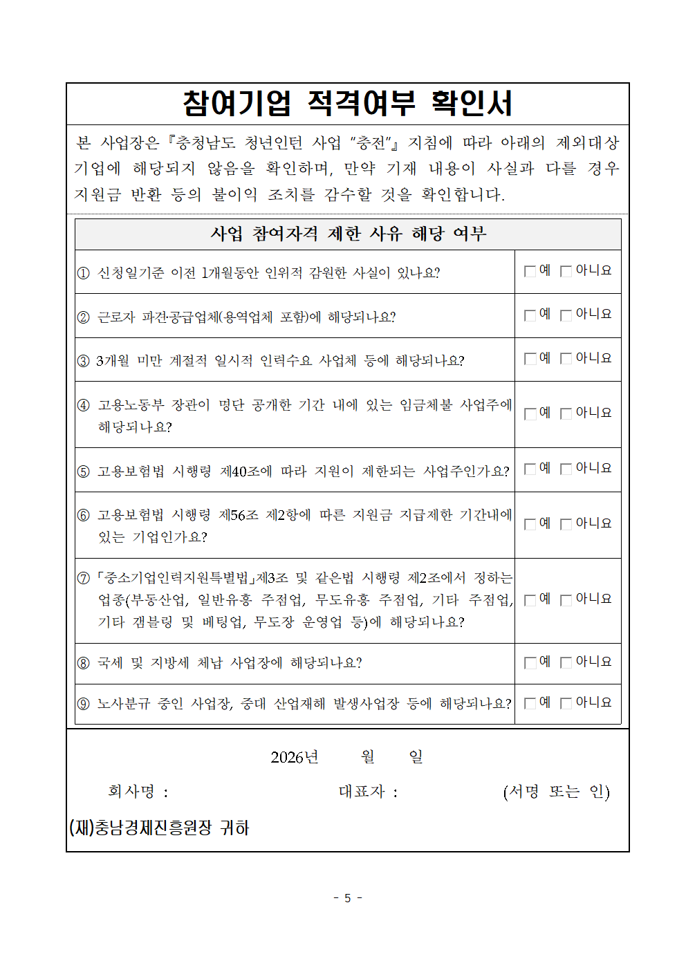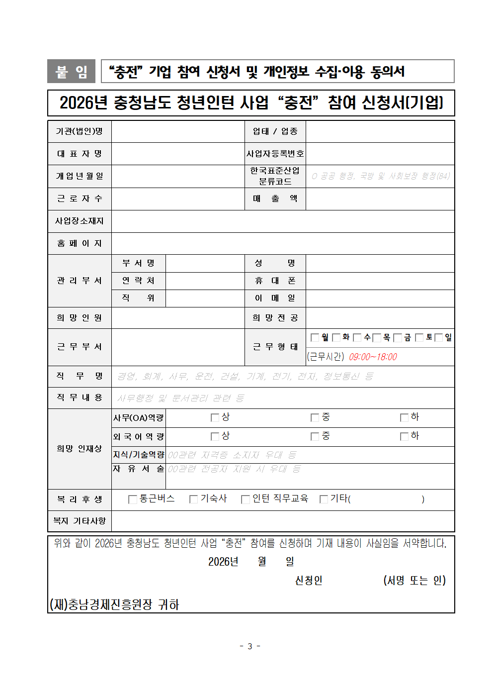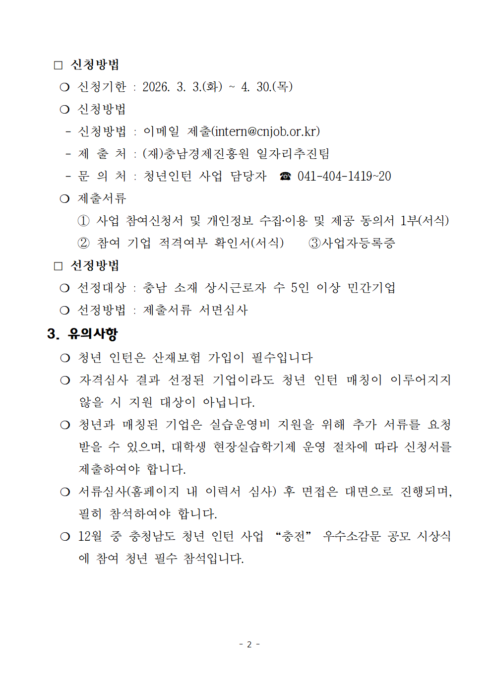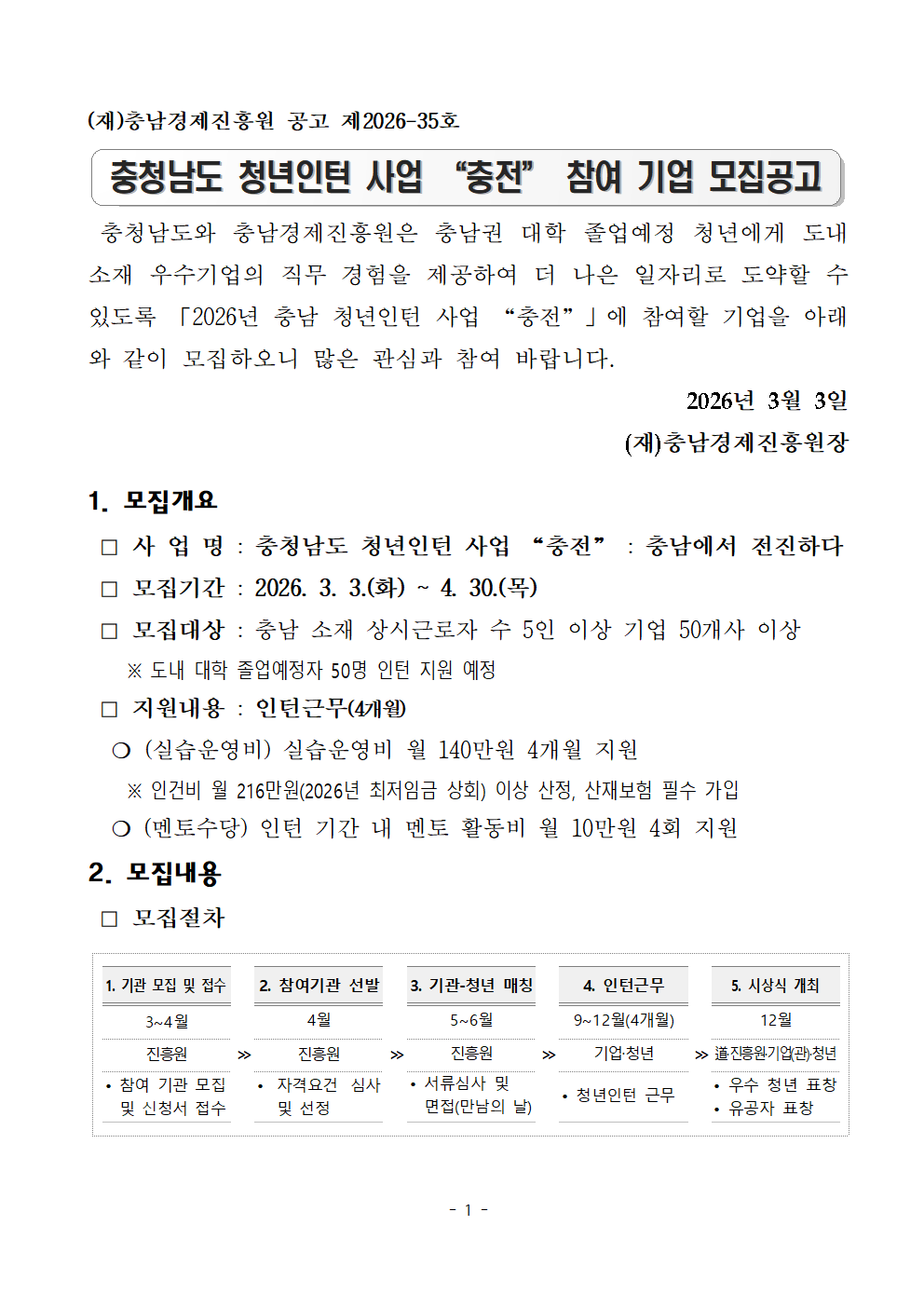 | 2026년 충청남도 청년인턴 사업 "충전" 참여 기업 모집 공고 |