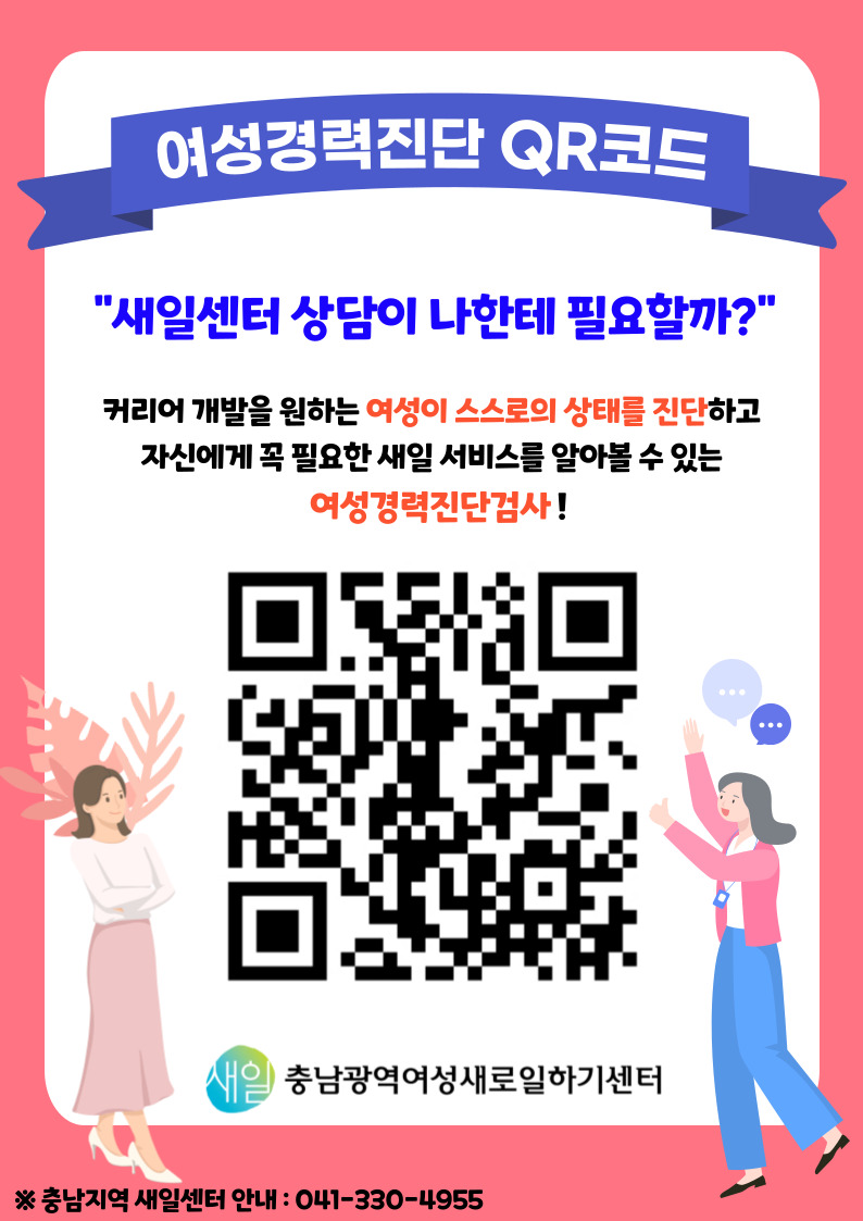| 충남광역여성새로일하기센터 여성경력진단검사 안내 |