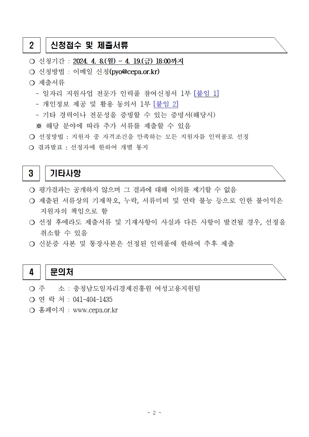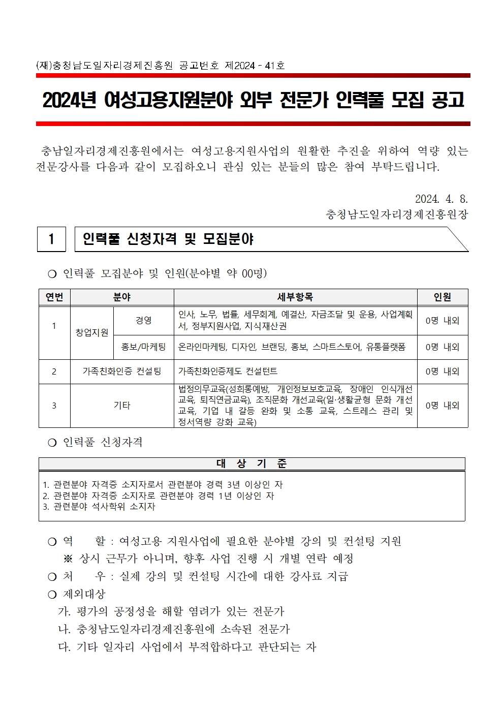 | 2024년 여성고용지원 분야 외부 전문가 인력풀 모집 공고 |