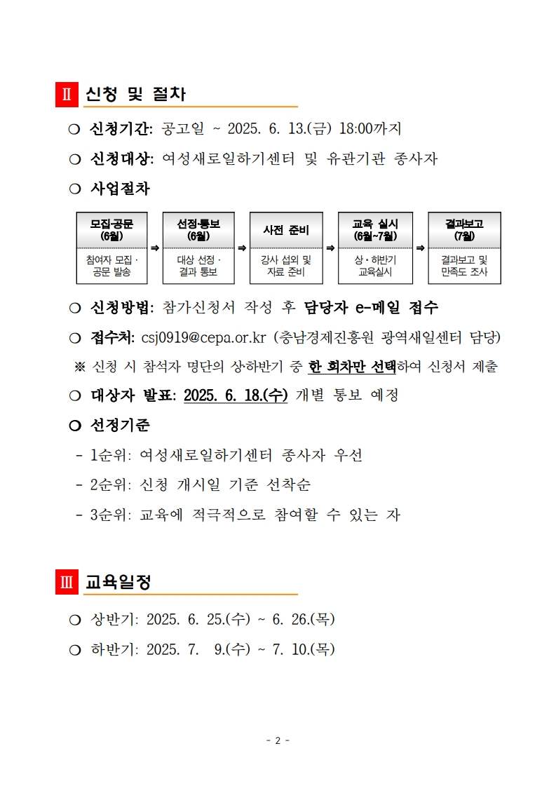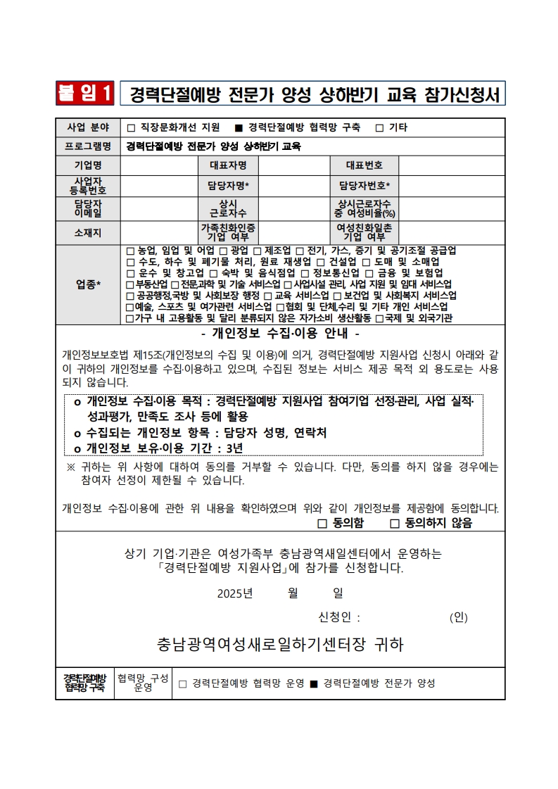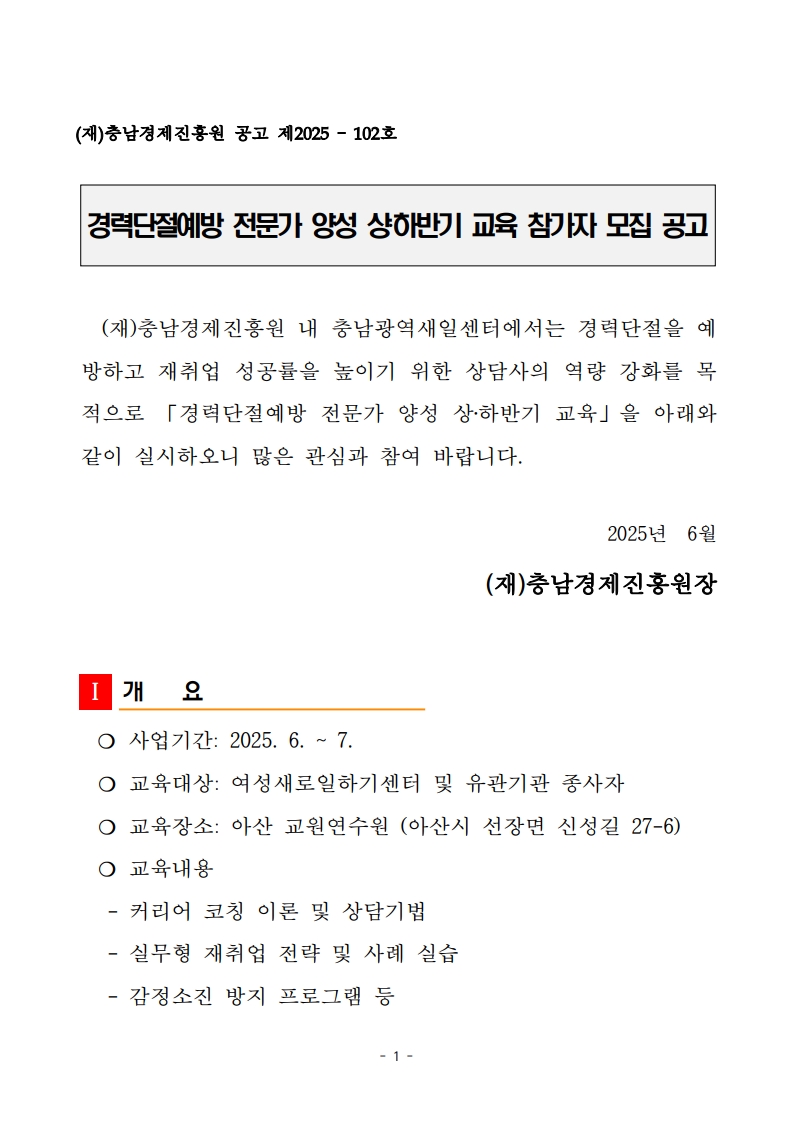 | 경력단절예방 전문가 양성 상‧하반기 교육 참가자 모집 공고 |