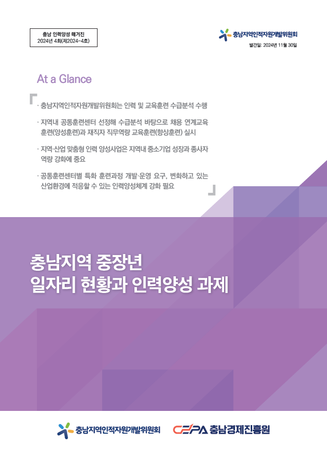 | 충남지역 중장년 일자리 현황과 인력양성 과제(2024년 충남 인력양성 매거진 4호) |