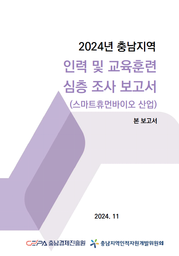 | 2024년 충남지역 인력 및 교육훈련 심층 조사(스마트휴먼바이오 산업) |