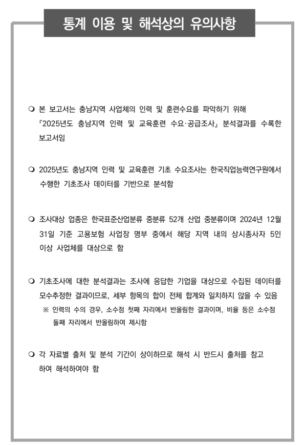 | 2025 충남지역 인력 및 훈련 기초조사 보고서 | ||||||||