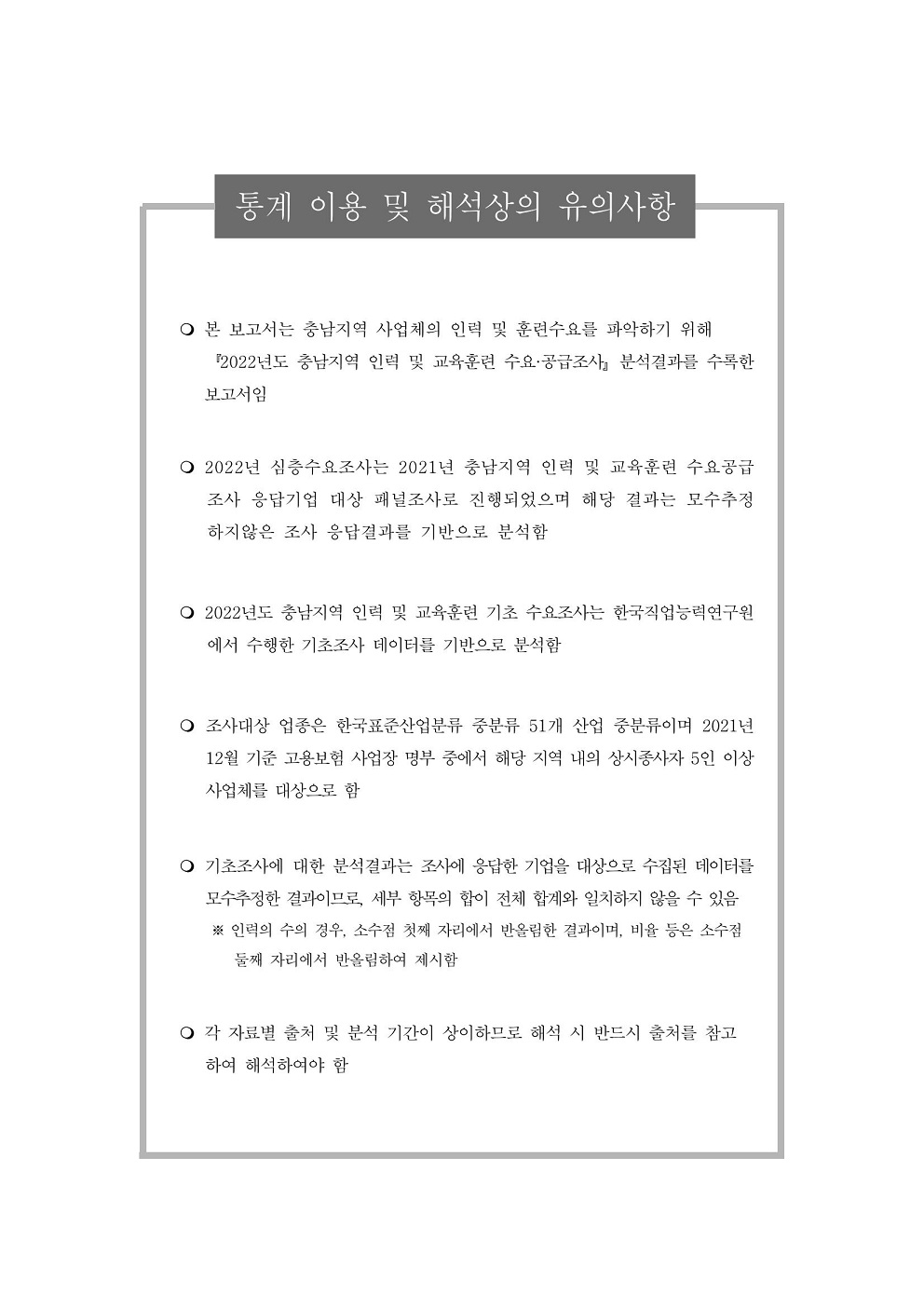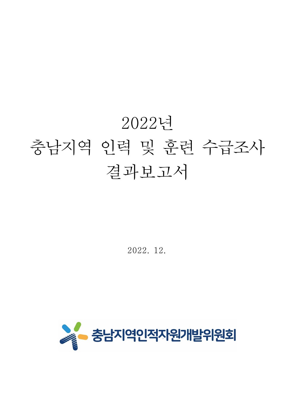 | 2022년 충남지역 인력 및 훈련 수급조사 결과보고서 |