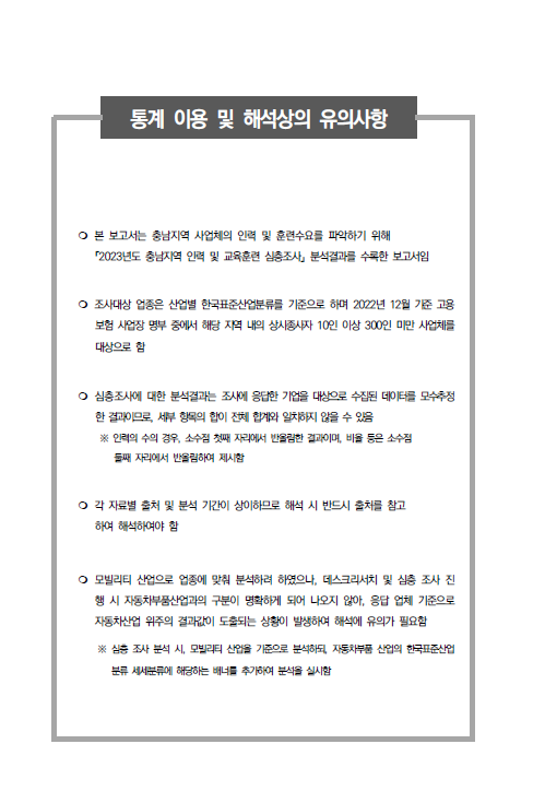 | 2023년 충남지역 인력 및 교육훈련 심층조사 보고서(모빌리티 산업) |