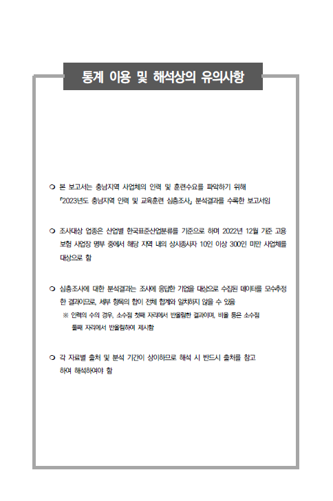 | 2023년 충남지역 인력 및 교육훈련 심층조사 보고서(첨단금속소재 산업) |