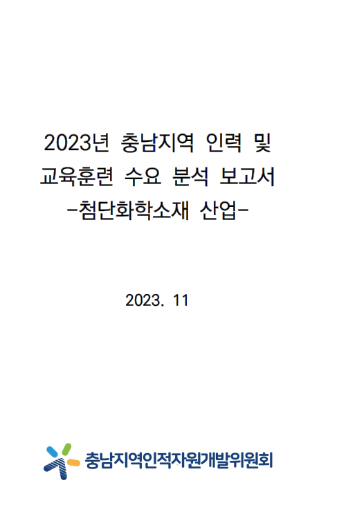 | 2023년 충남지역 인력 및 교육훈련 심층조사 보고서(첨단화학소재 산업) |