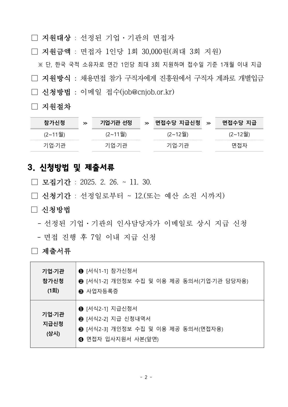 | 2025년 구직자 면접수당 지원사업 참가기업·기관 모집공고(지원마감) |