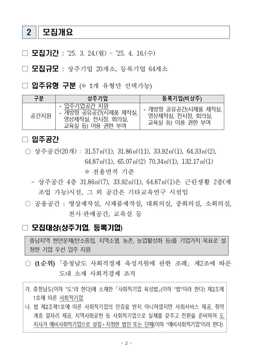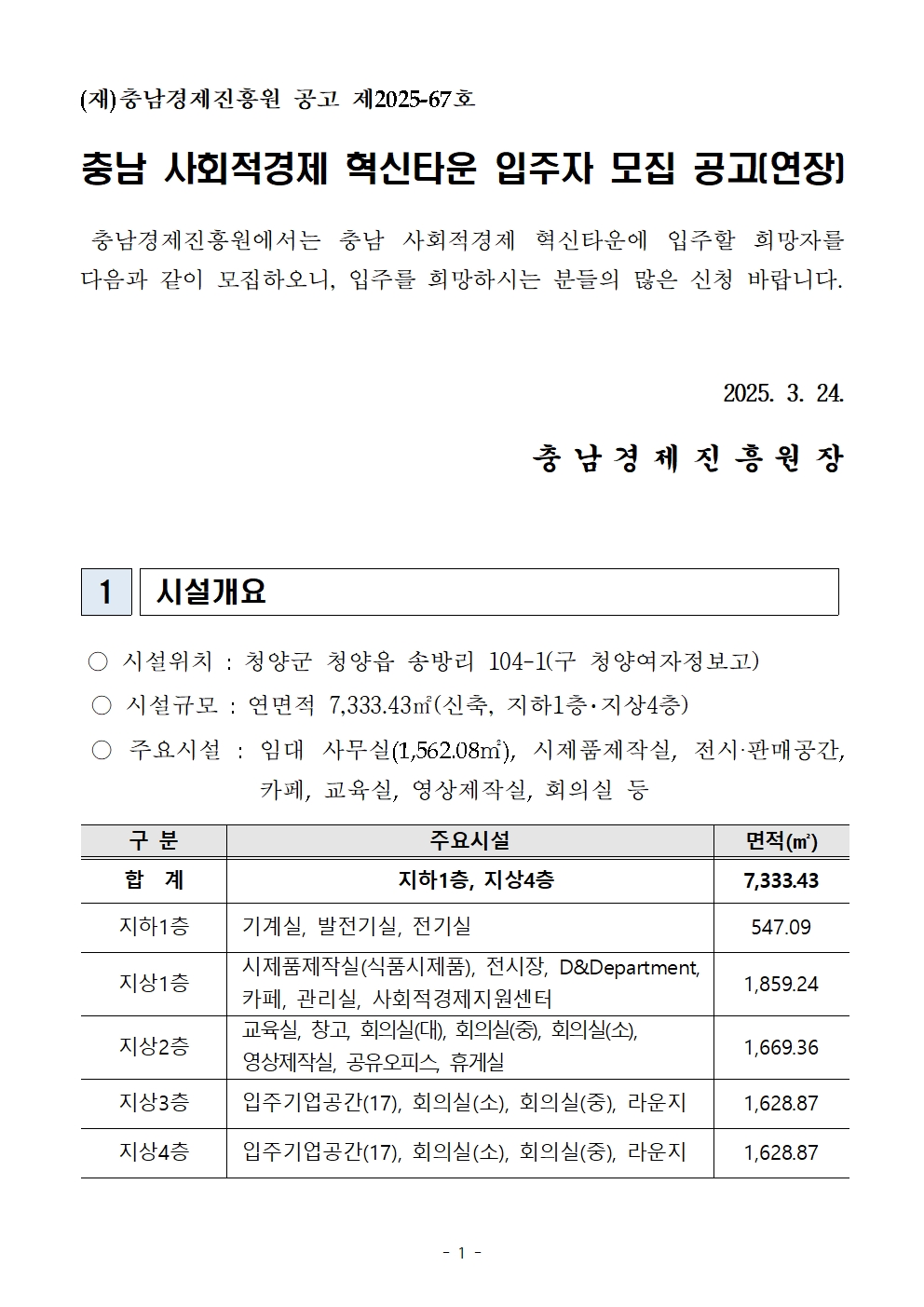 | 2025년 충남 사회적경제 혁신타운 입주자 모집 공고(연장) |