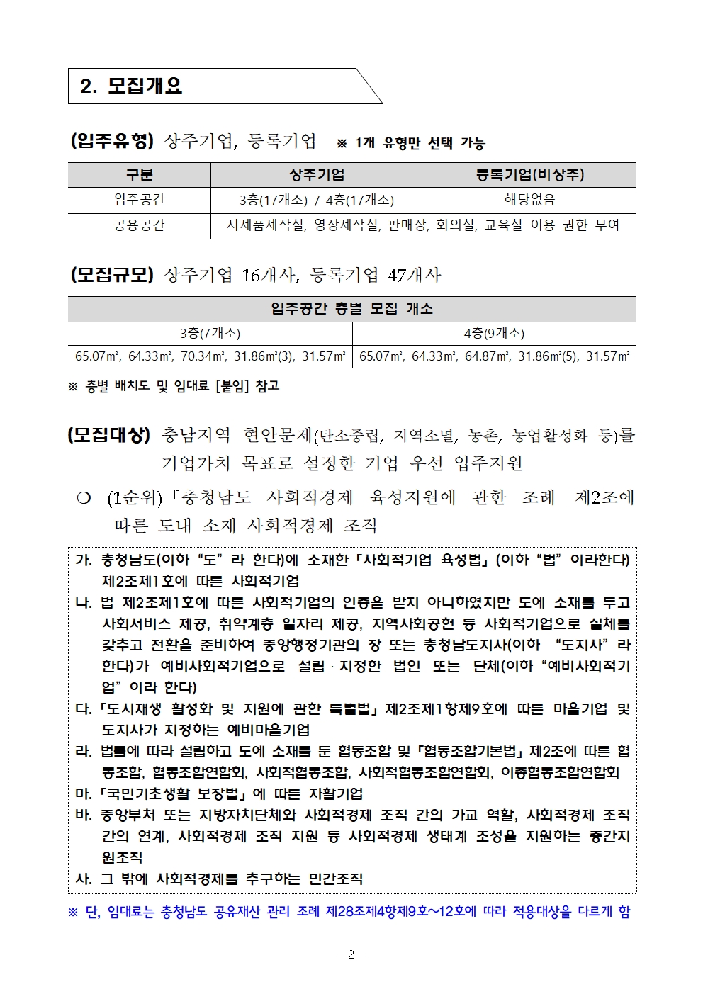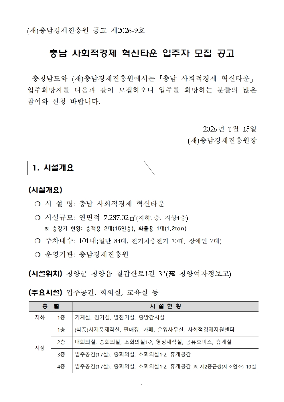 | 2026년 충남 사회적경제 혁신타운 입주자 모집 공고 |