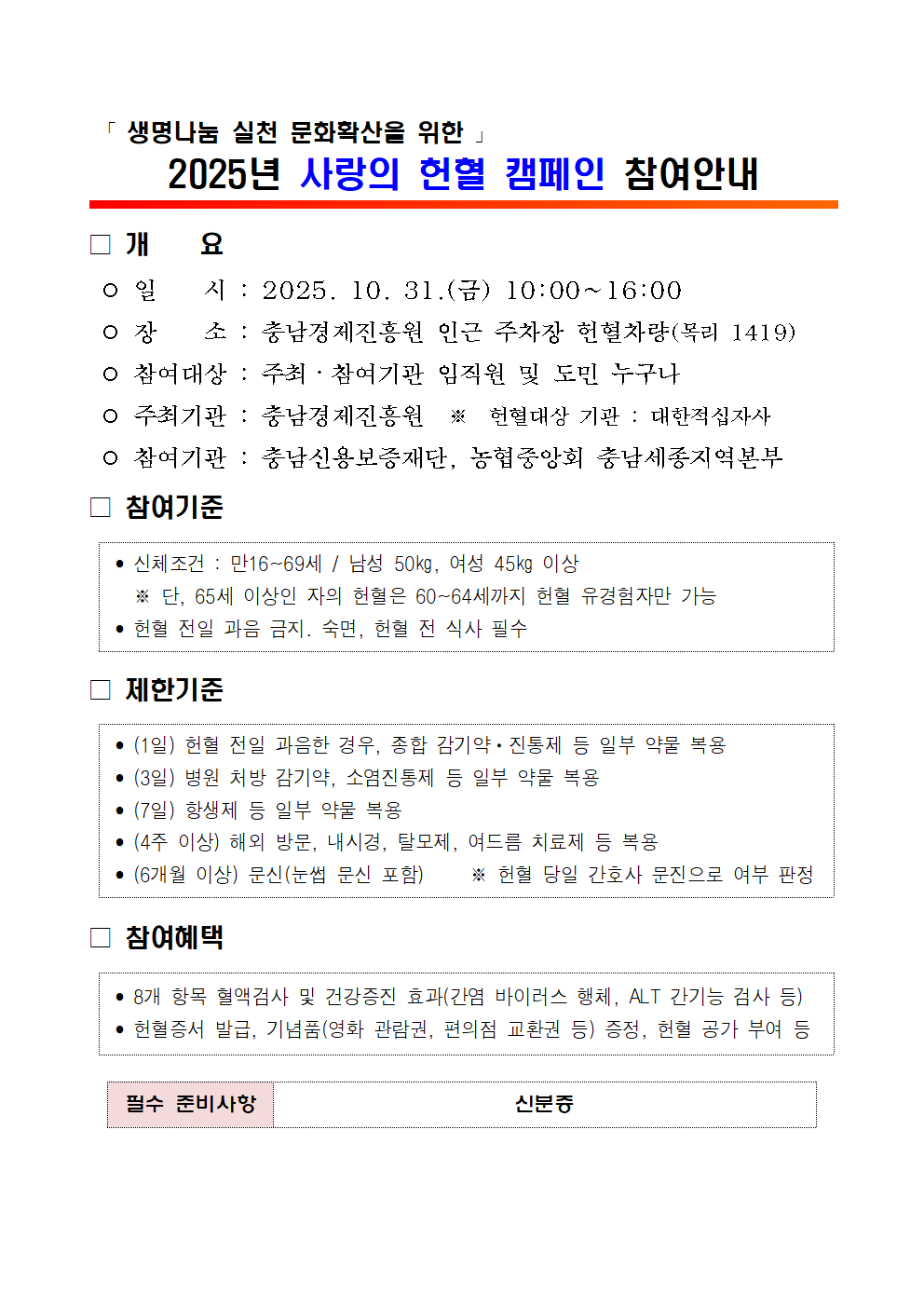 | [안내] 충남경제진흥원, 2025년 사랑의 헌혈 캠페인 참여 안내 |