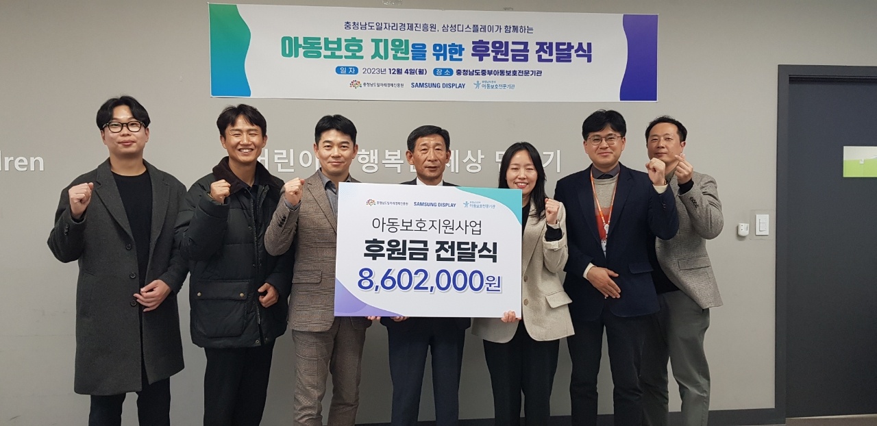 충청남도일자리경제진흥원, 학대 피해 아동 지원을 위한 기부금 전달