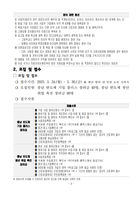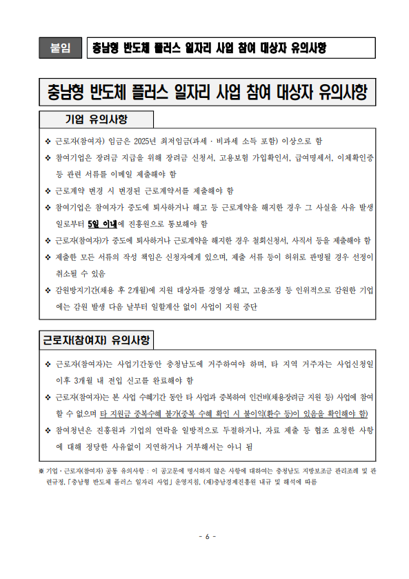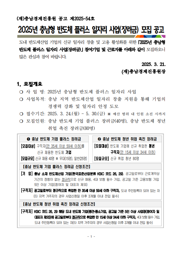 | 2025년 충남형 반도체 플러스 일자리 사업(장려금) 모집 공고 |