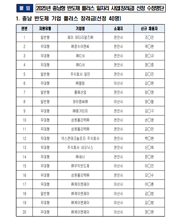 | 2025년 충남형 반도체 플러스 일자리 사업(장려금) 모집 선정 안내 |