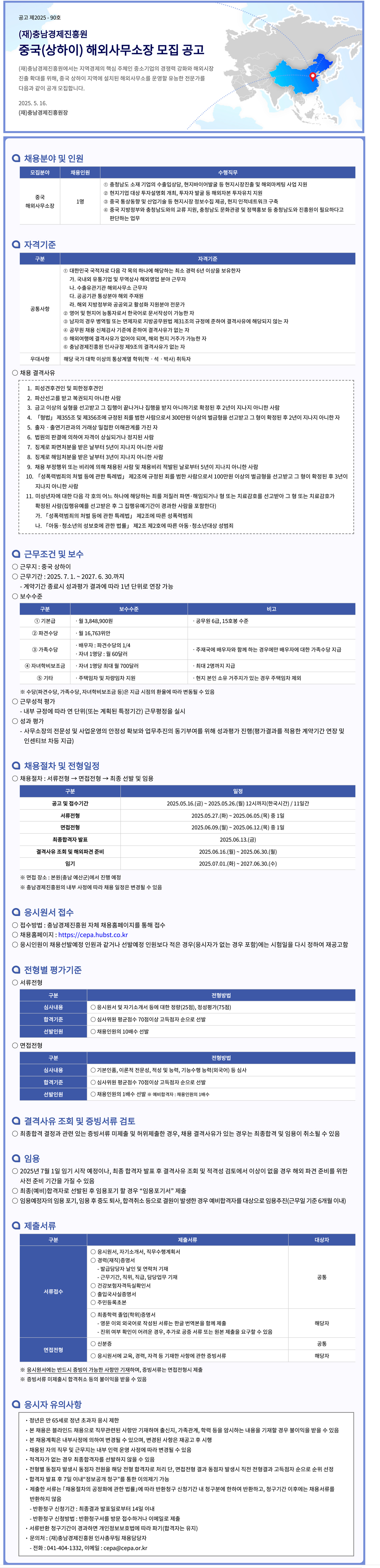 | 충남경제진흥원 중국(상하이) 해외사무소장 모집 공고 |