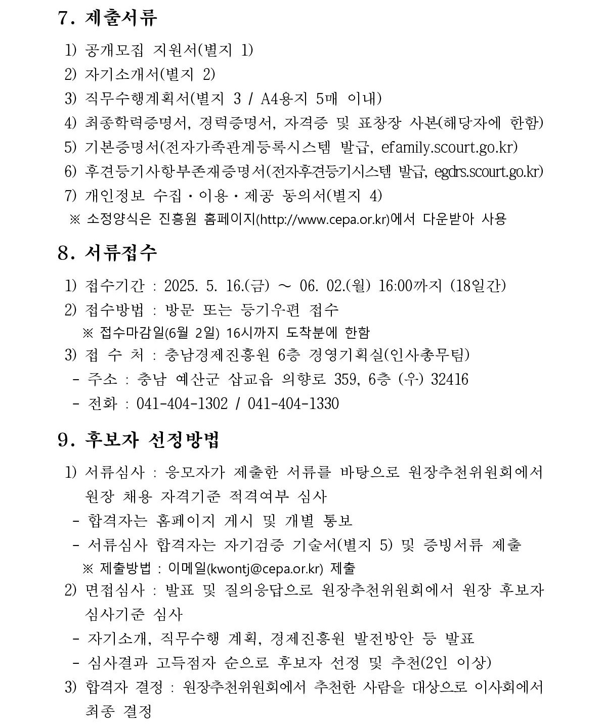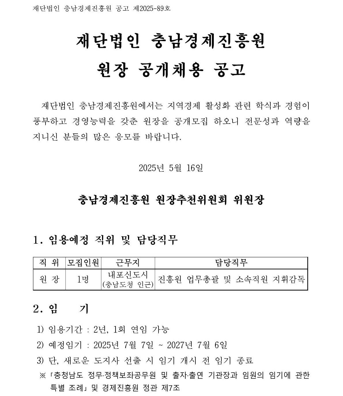 | 재단법인 충남경제진흥원 원장 공개채용 공고 |