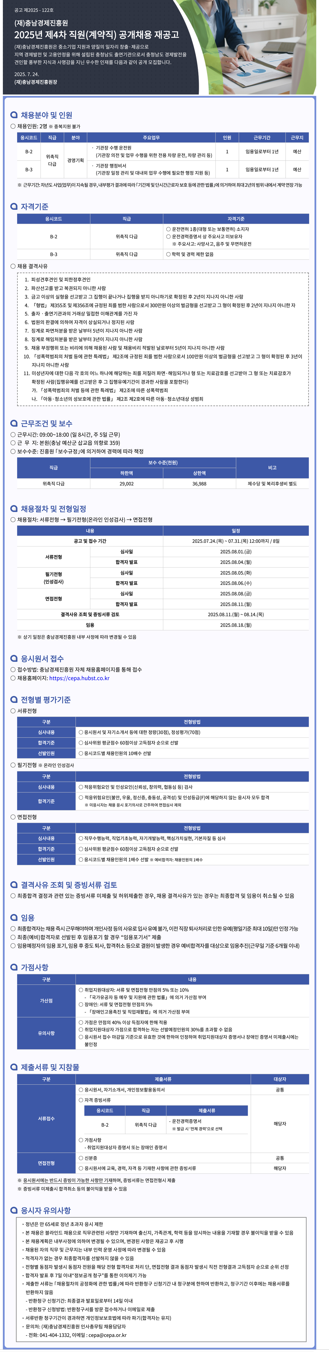 | 2025년 제4차 직원(계약직) 공개채용 재공고 |