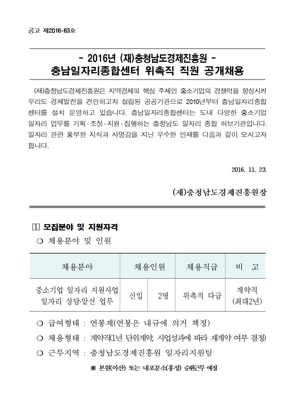 | 2016년 (재)충청남도경제진흥원 충남일자리종합센터 위촉직 직원 공개채용 |