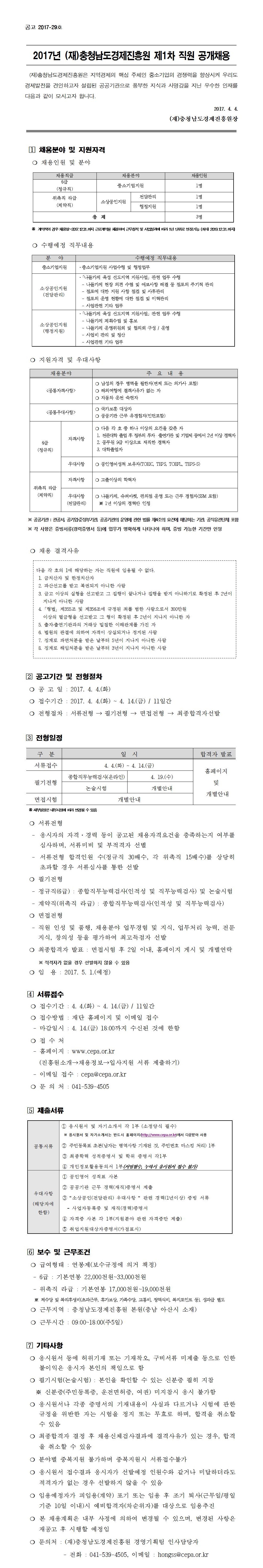 2017년 충청남도경제진흥원 제1차 직원 공개채용