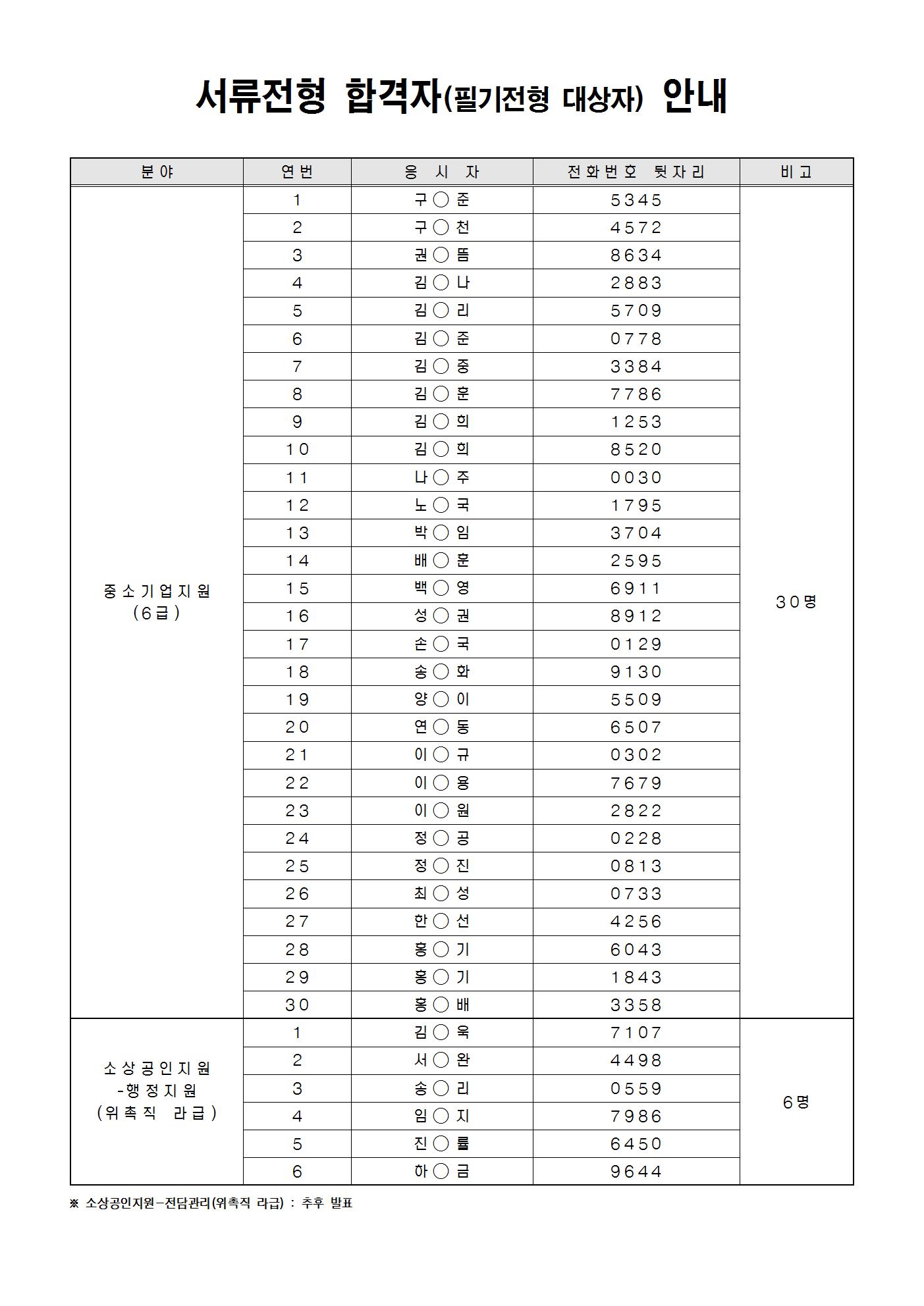| 2017년도 제1차 직원채용 서류전형 합격자 공고 |