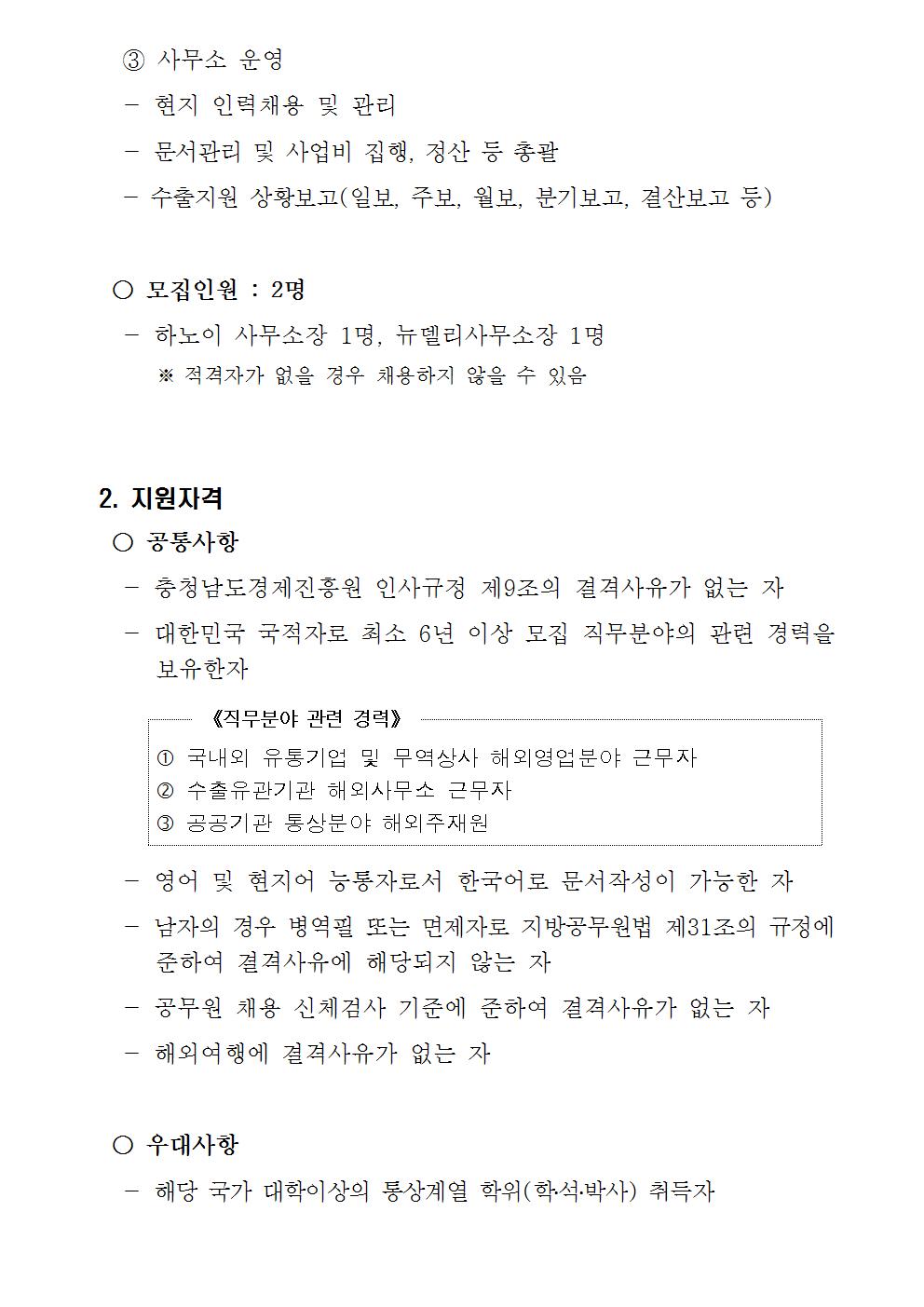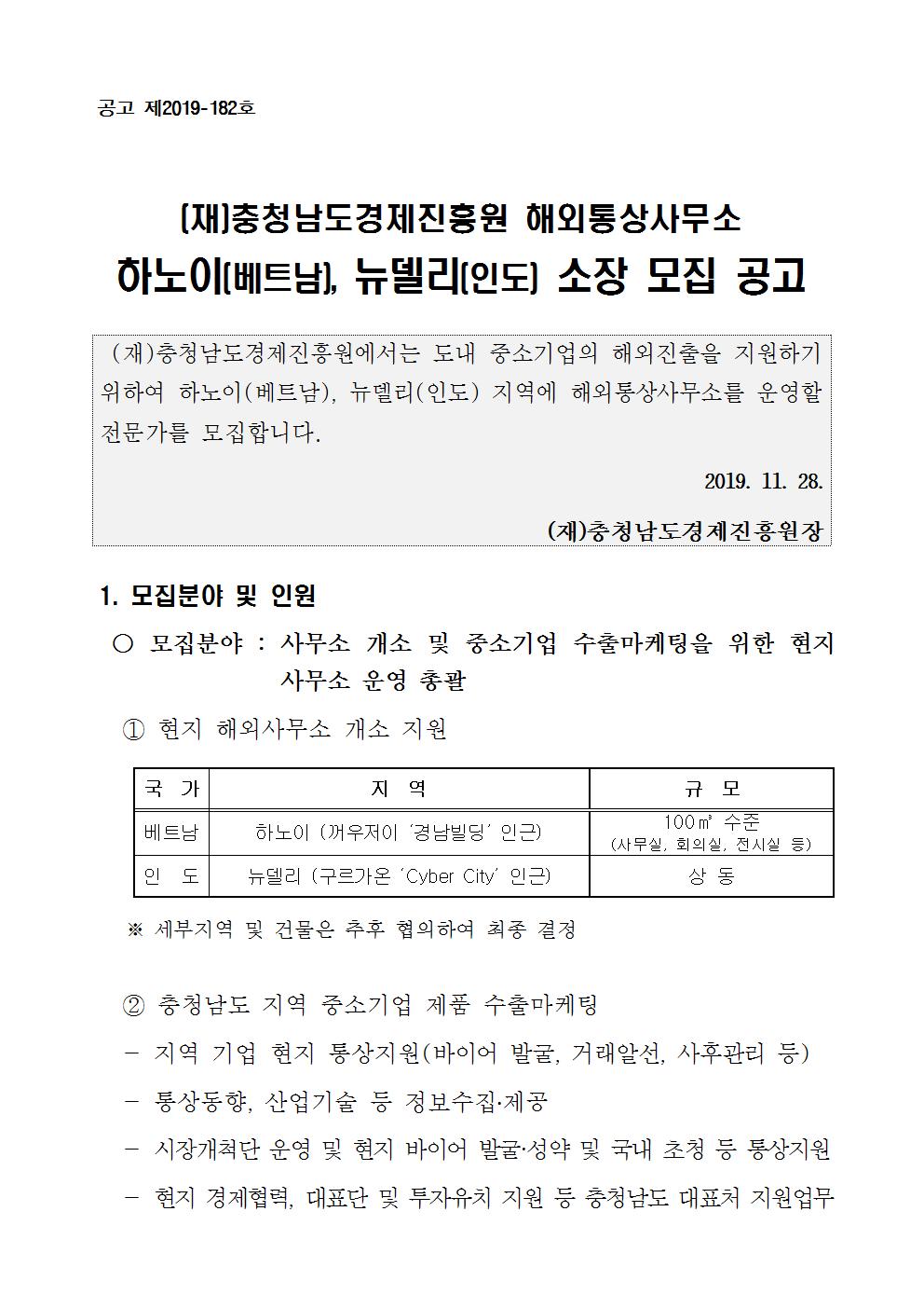 | (재)충청남도경제진흥원 해외통상사무소 하노이(베트남),뉴델리(인도) 소장 모집 공고 |