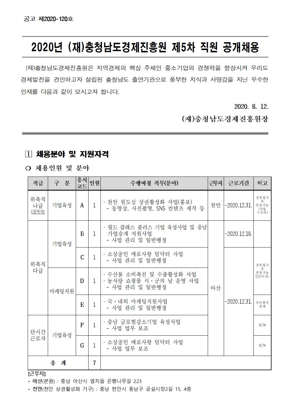 | 2020년 충청남도경제진흥원 제5차 직원채용(계약직) |