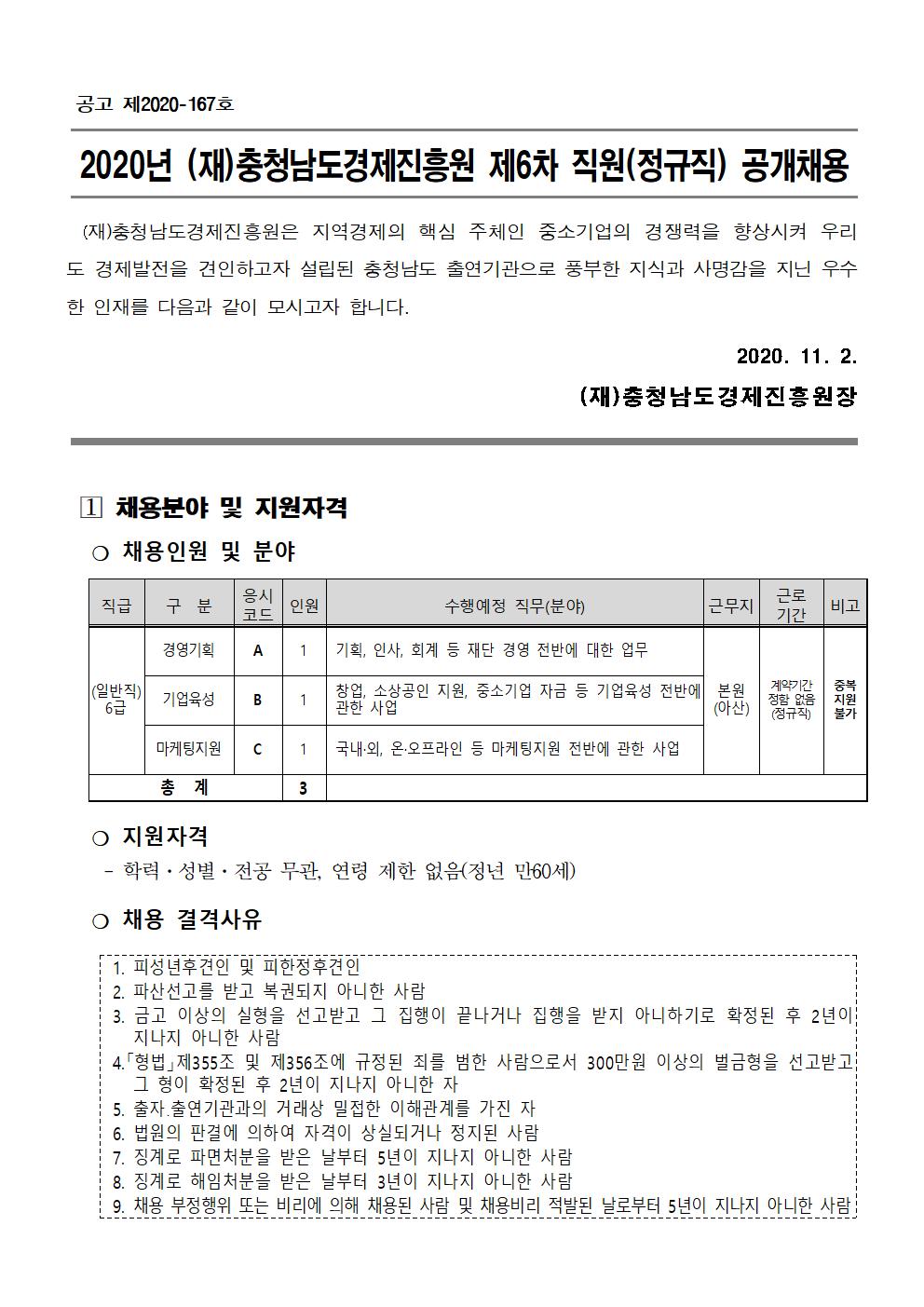 | 2020년 충청남도경제진흥원 제6차 직원채용(정규직) |