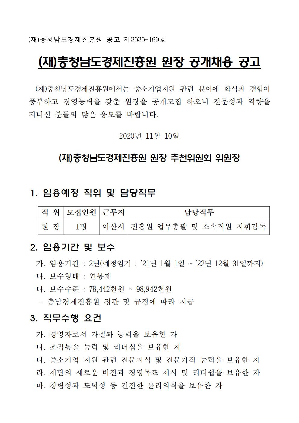 | (재)충청남도경제진흥원 원장 공개채용 공고 |