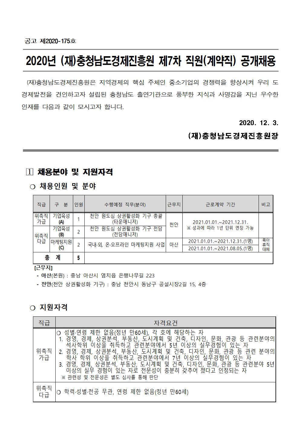 | 2020년 충청남도경제진흥원 제7차 직원(계약직) 채용 공고 |
