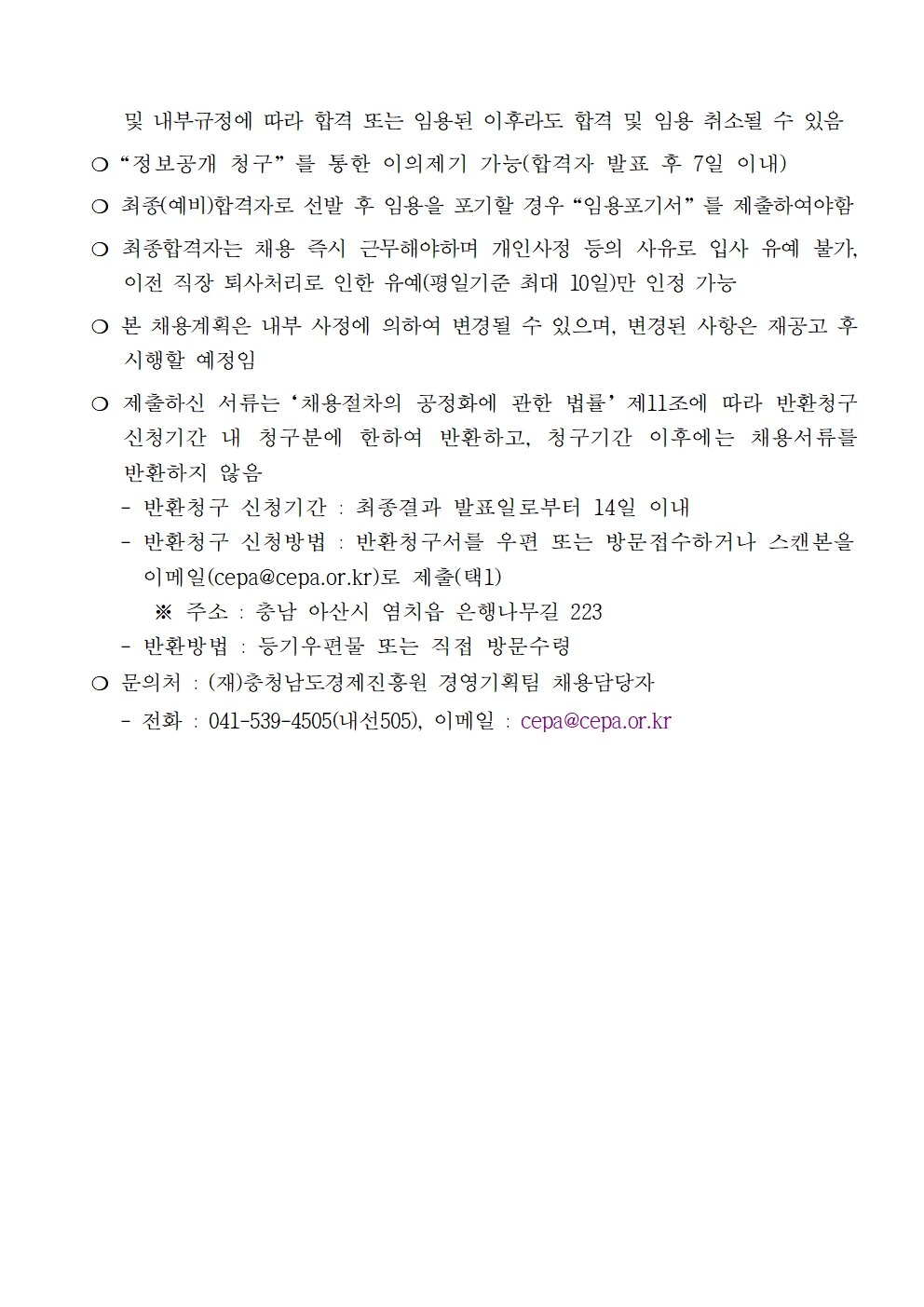 2020년 (재)충청남도경제진흥원 제8차 직원(계약직) 공개채용