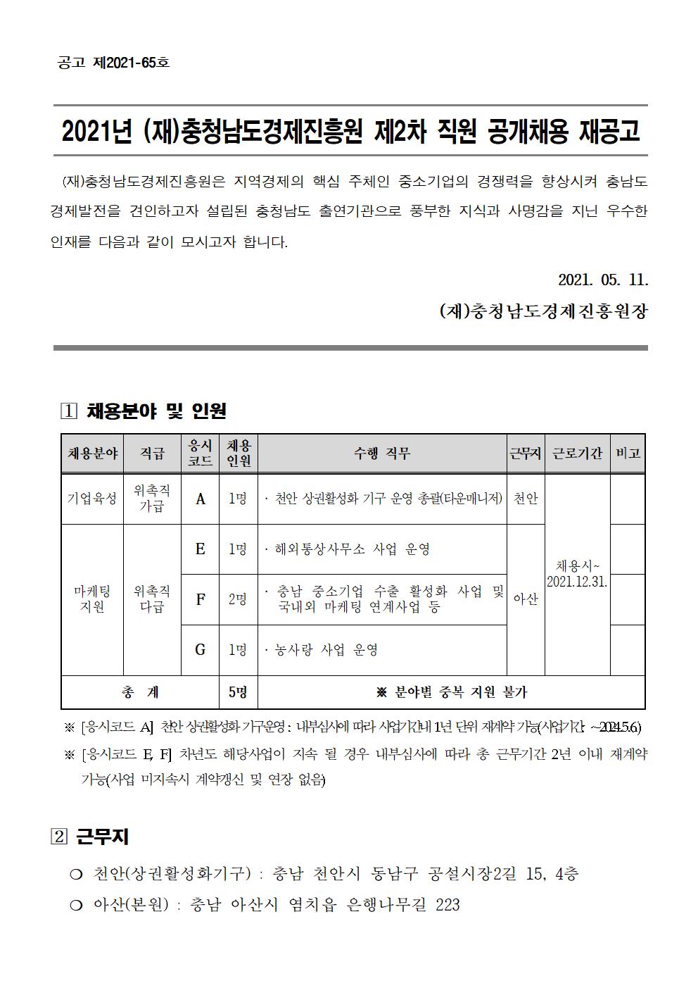 | 2021년 제2차 직원채용(계약직) 재공고 |