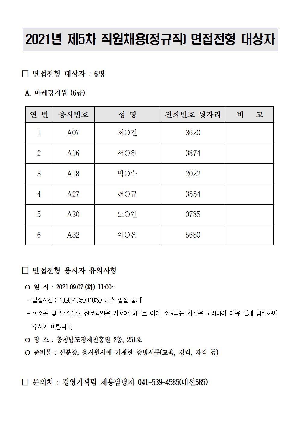 2021년 제5차 직원채용(정규직) 면접전형 대상자.pdf