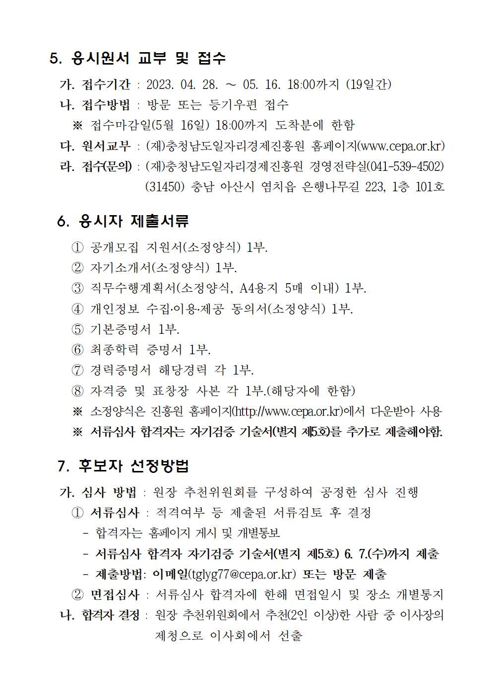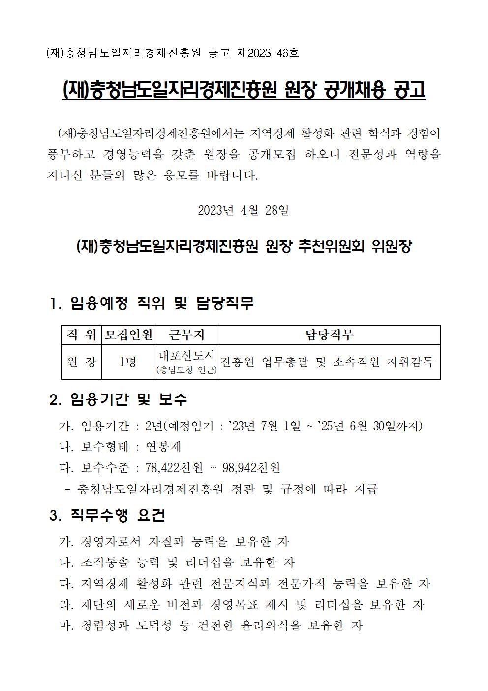 | (재)충청남도일자리경제진흥원 원장 공개채용 공고 |