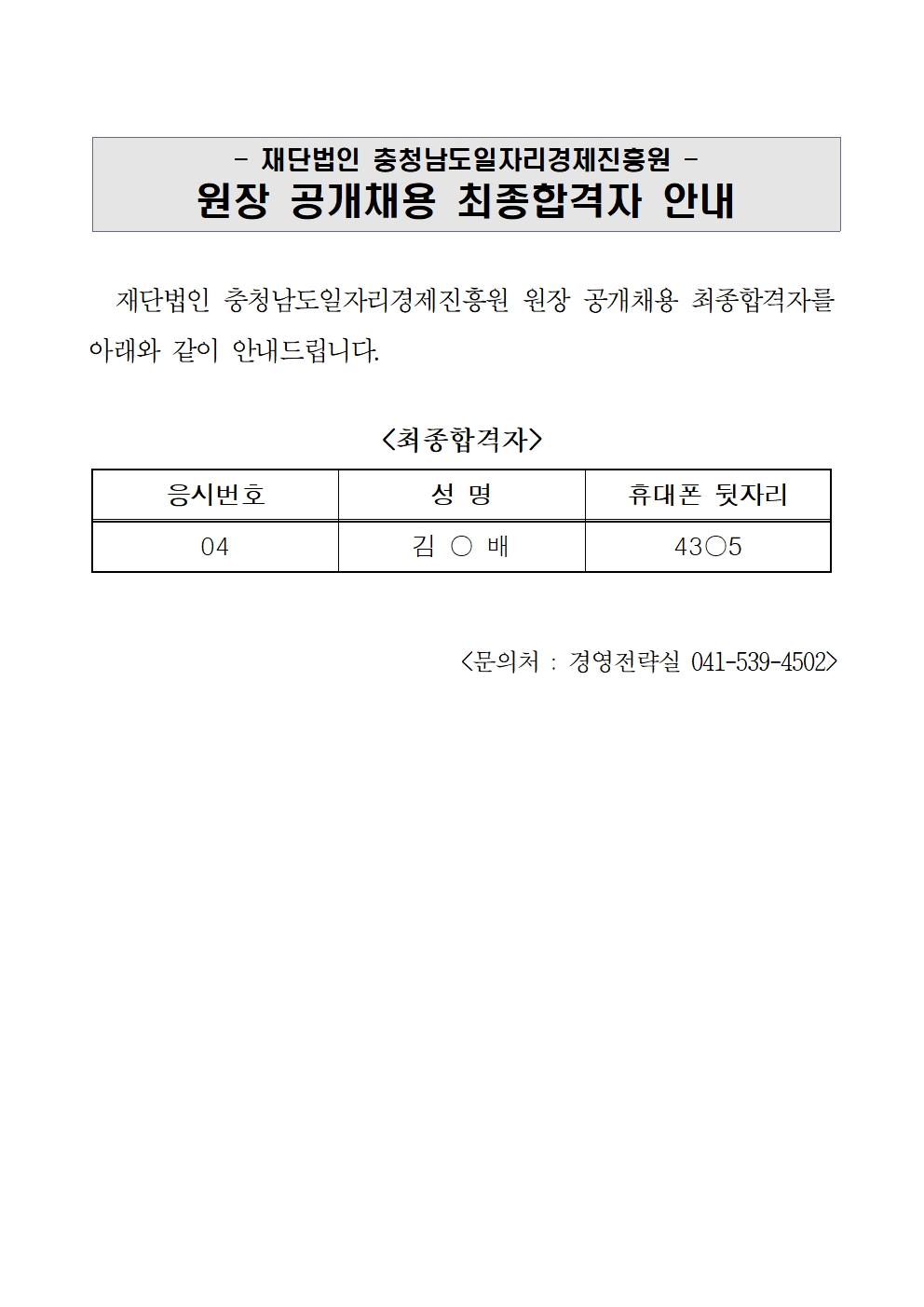 (재)충청남도일자리경제진흥원 원장 공개채용 최종합격자 안내.pdf