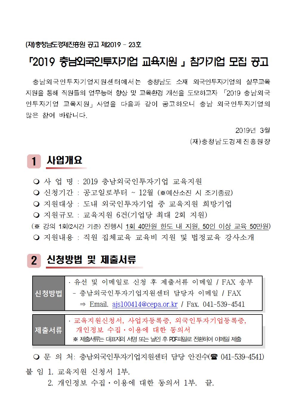 | 2019 충남외국인투자기업 교육지원사업 |