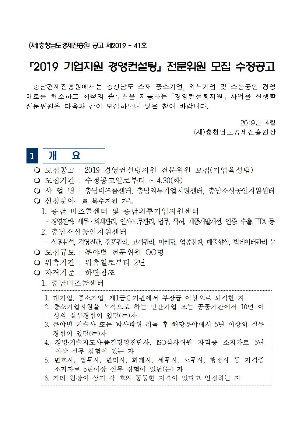 | 수정공고2019기업지원 경영컨설팅 전문위원 모집 |