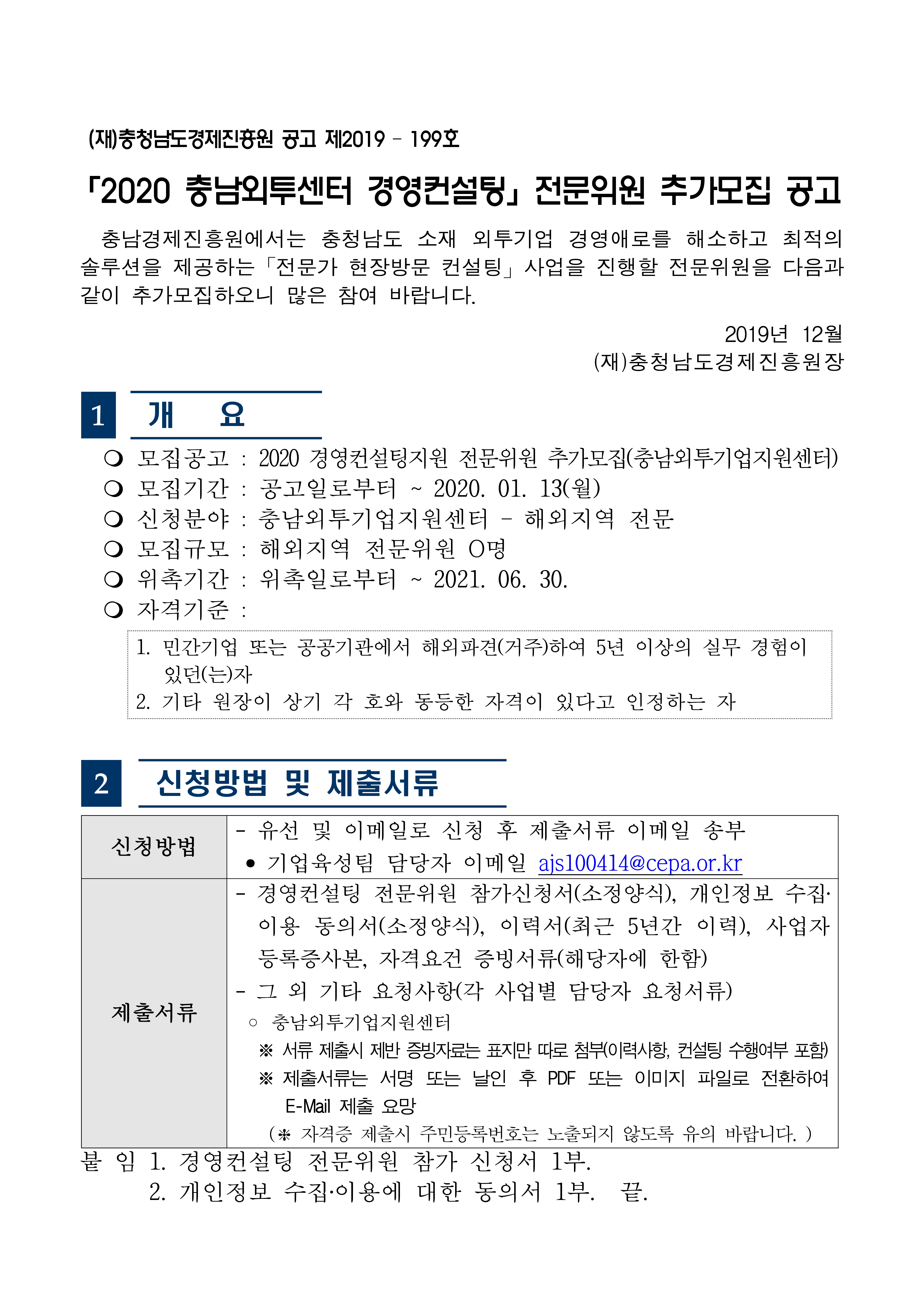 | 충남외투센터 경영컨설팅 전문위원 추가모집 공고 |