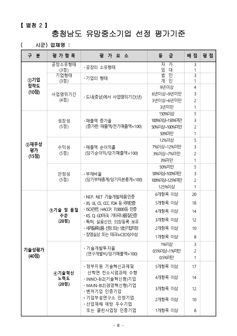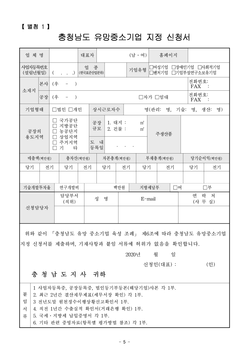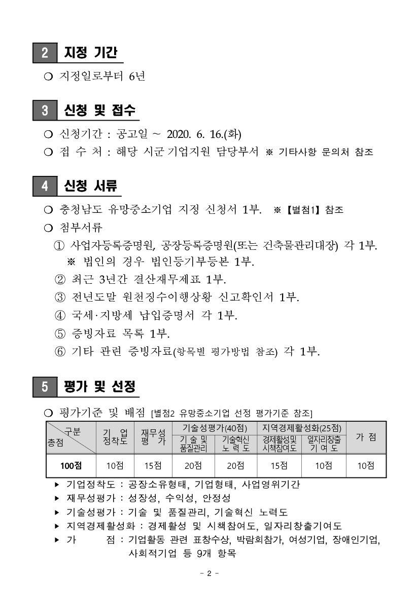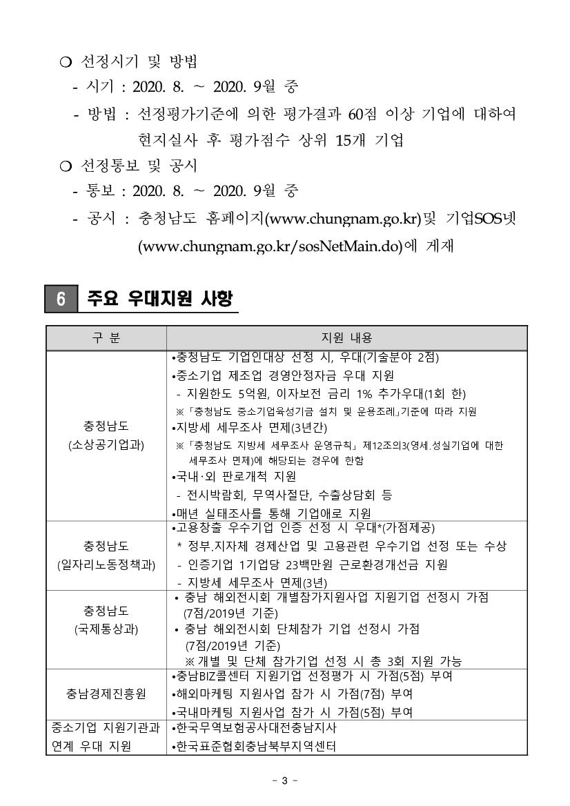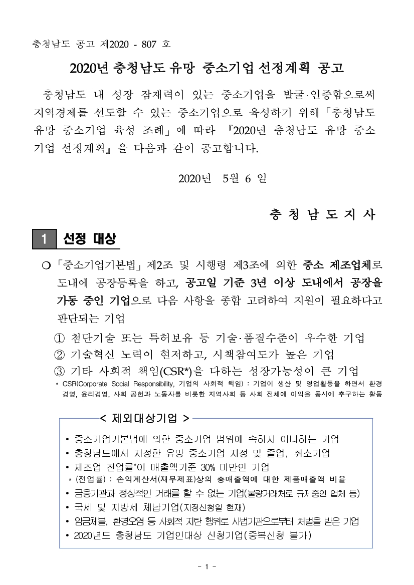 | 2020년 충청남도 유망 중소기업 선정계획 공고 |