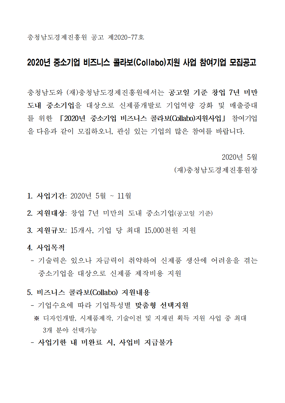 | 2020년 중소기업 비즈니스 콜라보(Collabo)지원사업 참여기업 모집공고 |