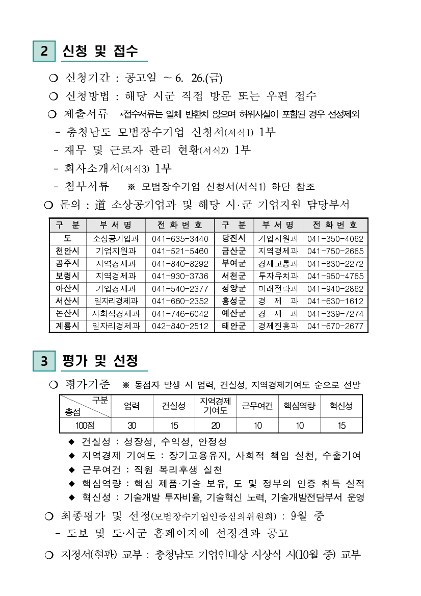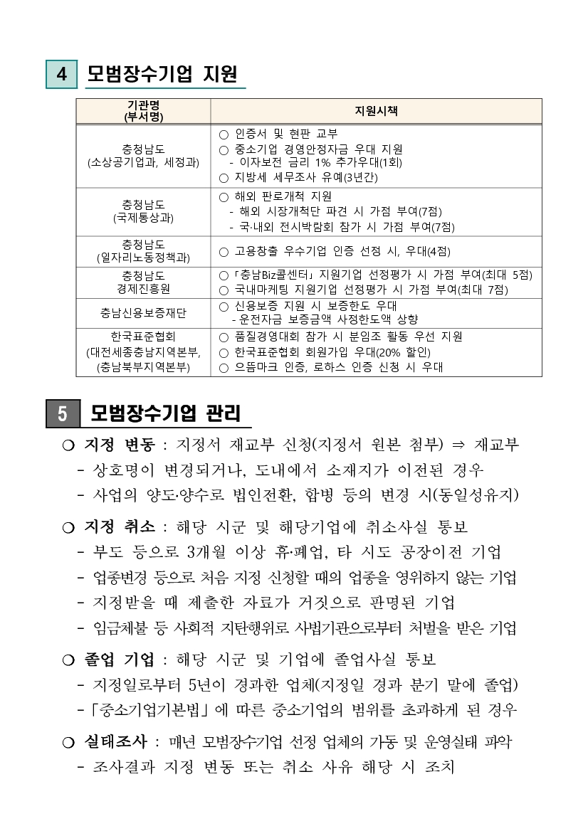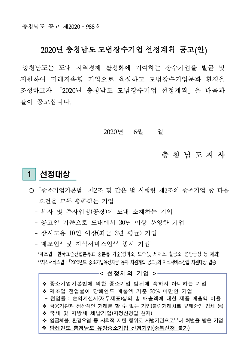 | 2020년 충청남도 모범장수기업 선정계획 공고 |