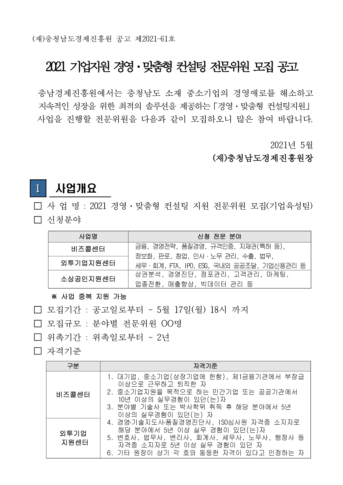 | 2021 기업지원 경영·맞춤형 컨설팅 전문위원 모집 공고 |