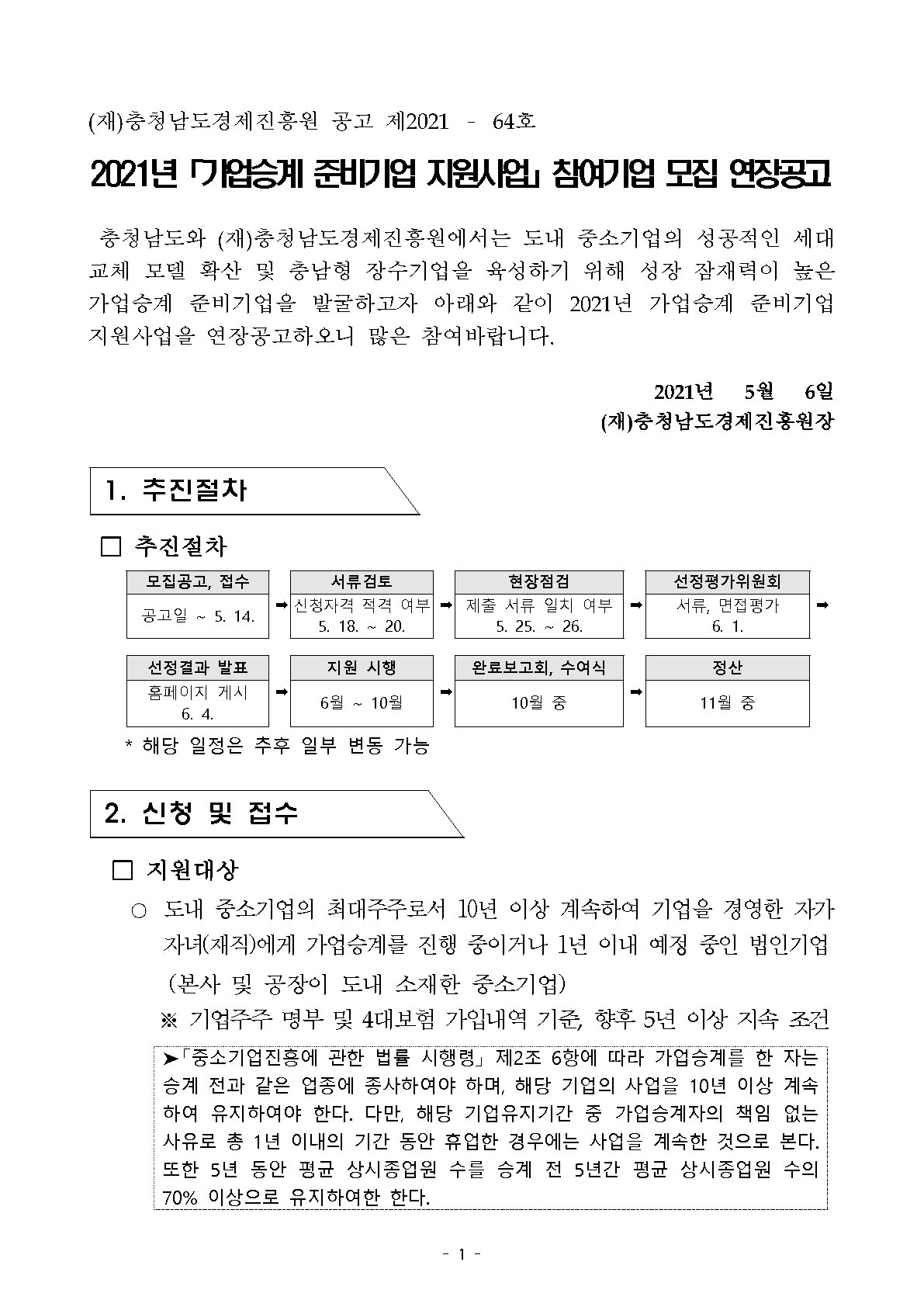 | 2021년 가업승계 준비기업 지원사업 참여기업 모집 연장공고 |