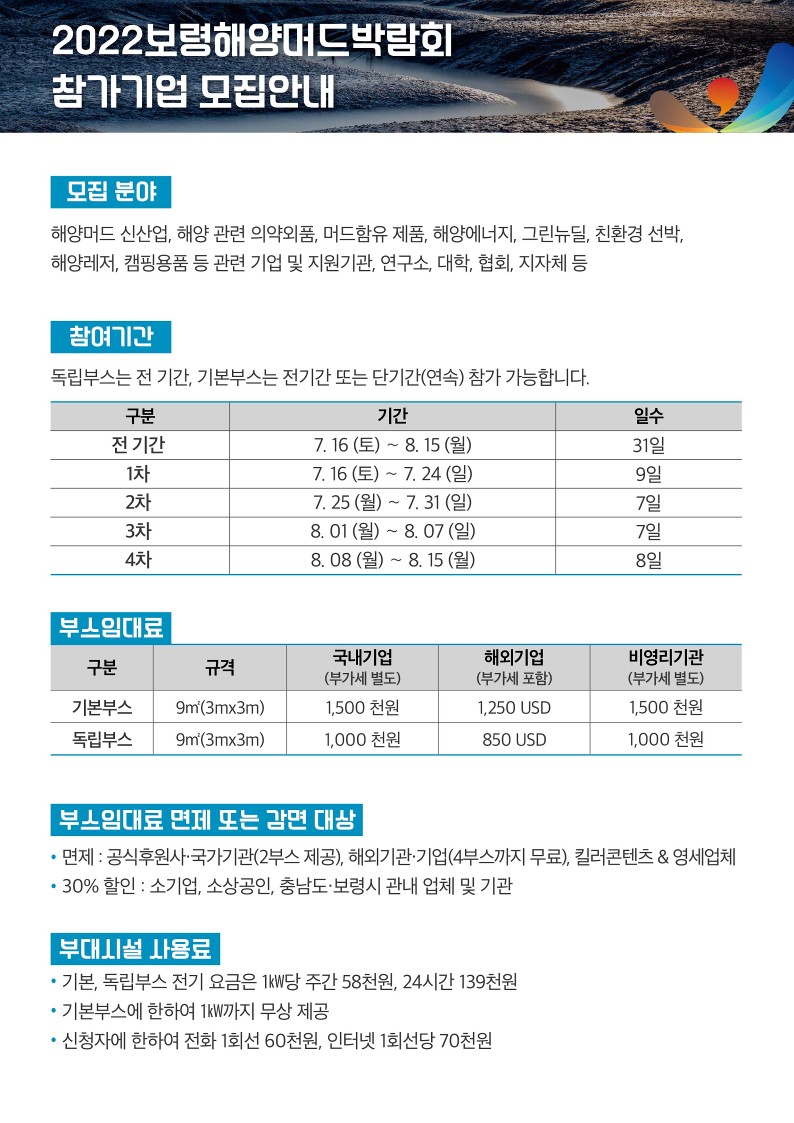 | 2022년 보령해양머드박람회 참가신청 안내 |